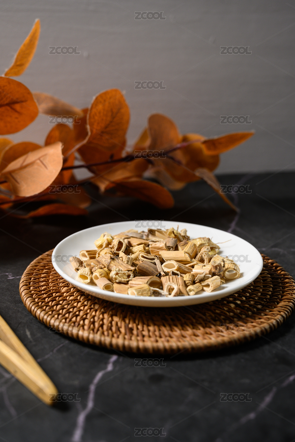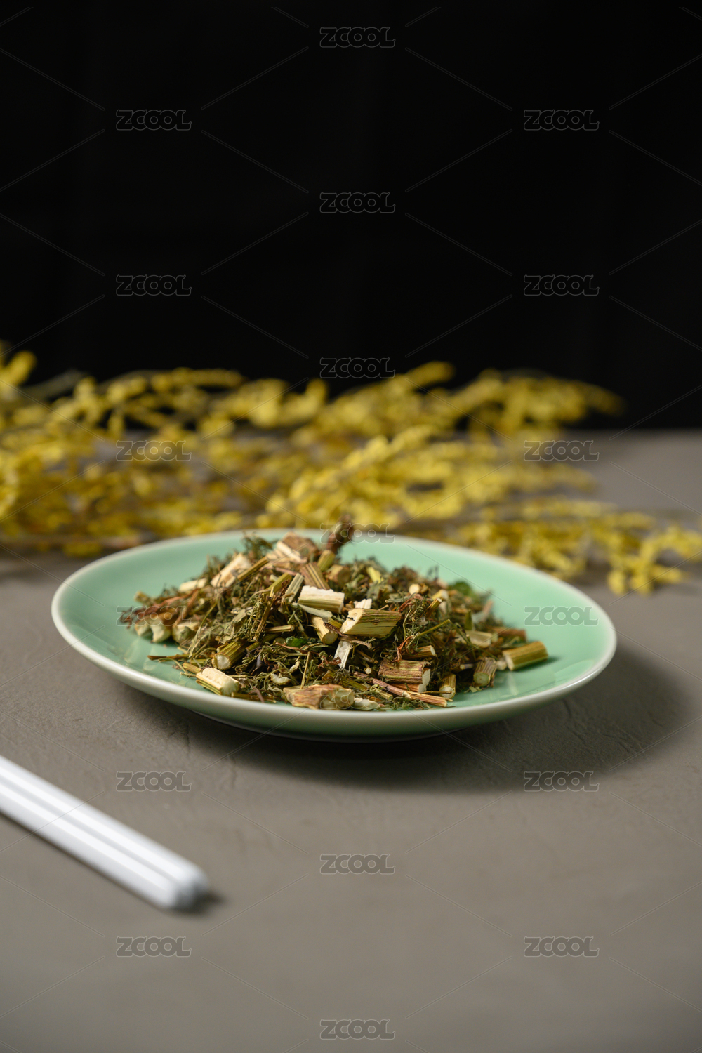 桌面上的盘子里的美味可口的陈皮白茶叶