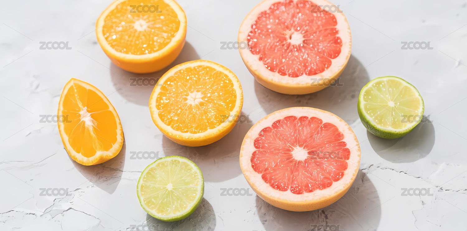 新鲜柑橘类水果切片展示