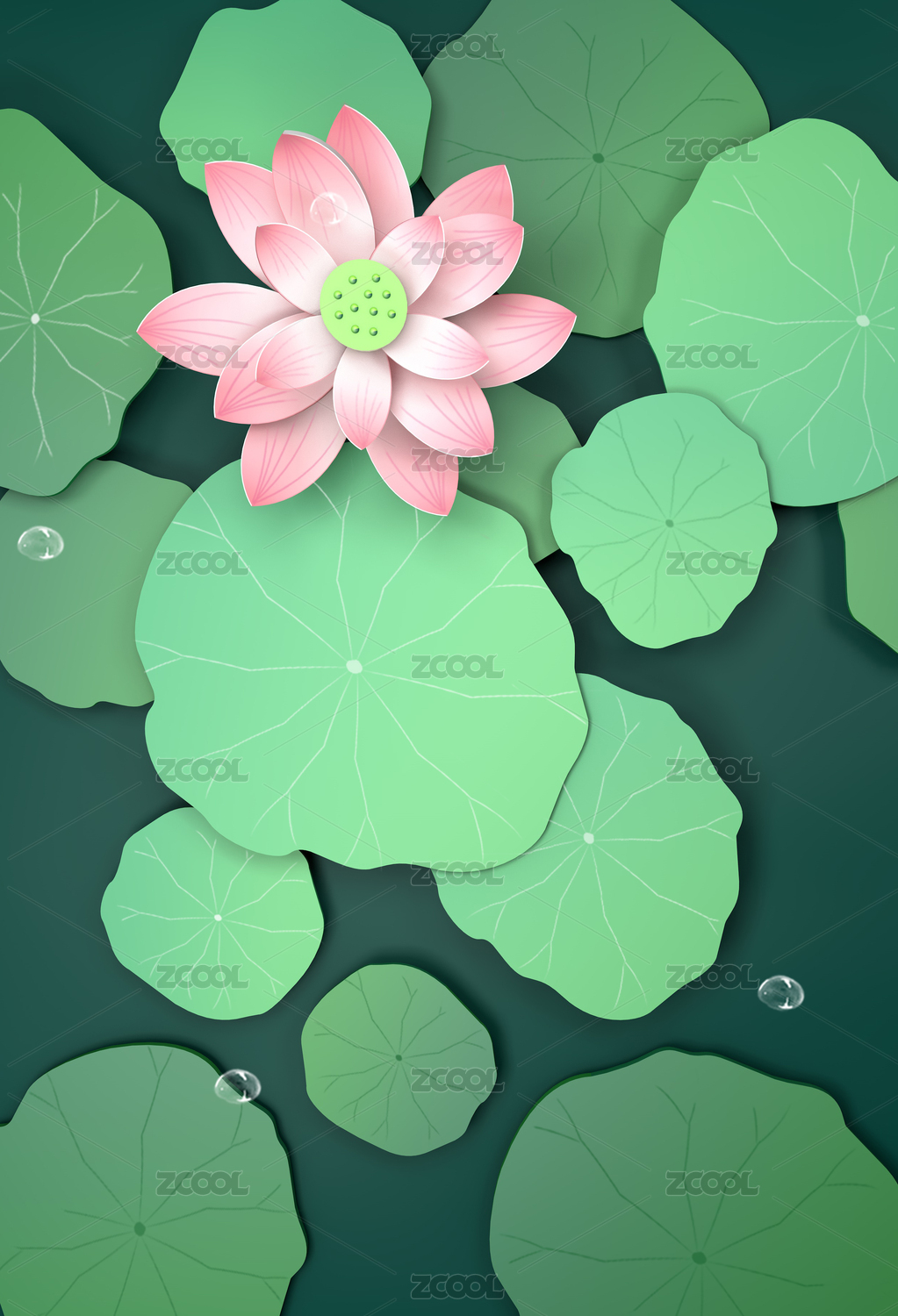 大暑节气夏日荷花夏天池塘荷叶花朵国潮插画