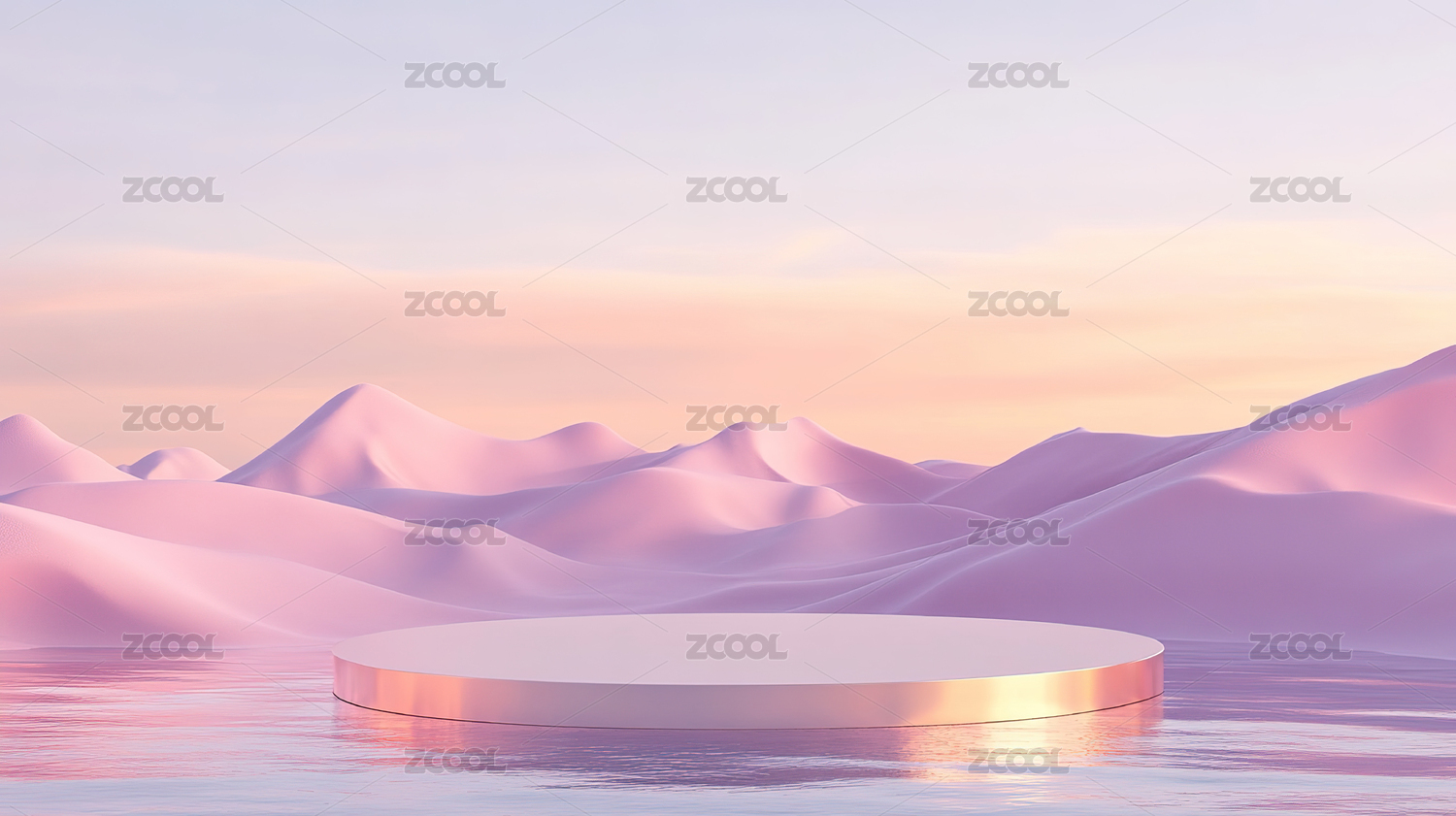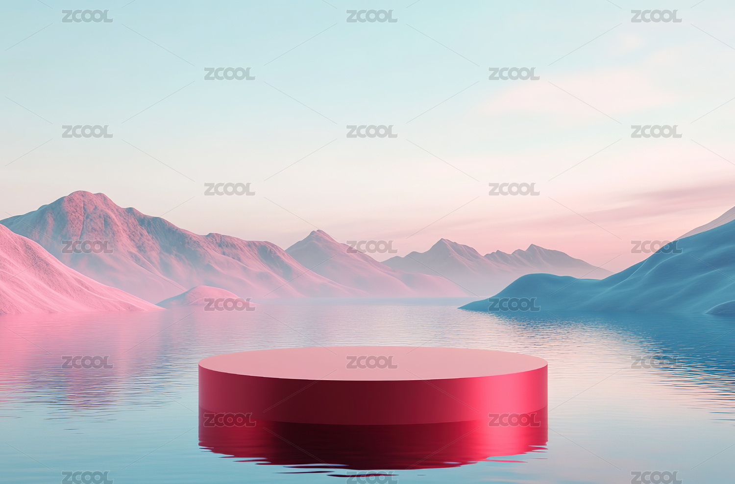 粉色山脉地形湖面与产品展台背景