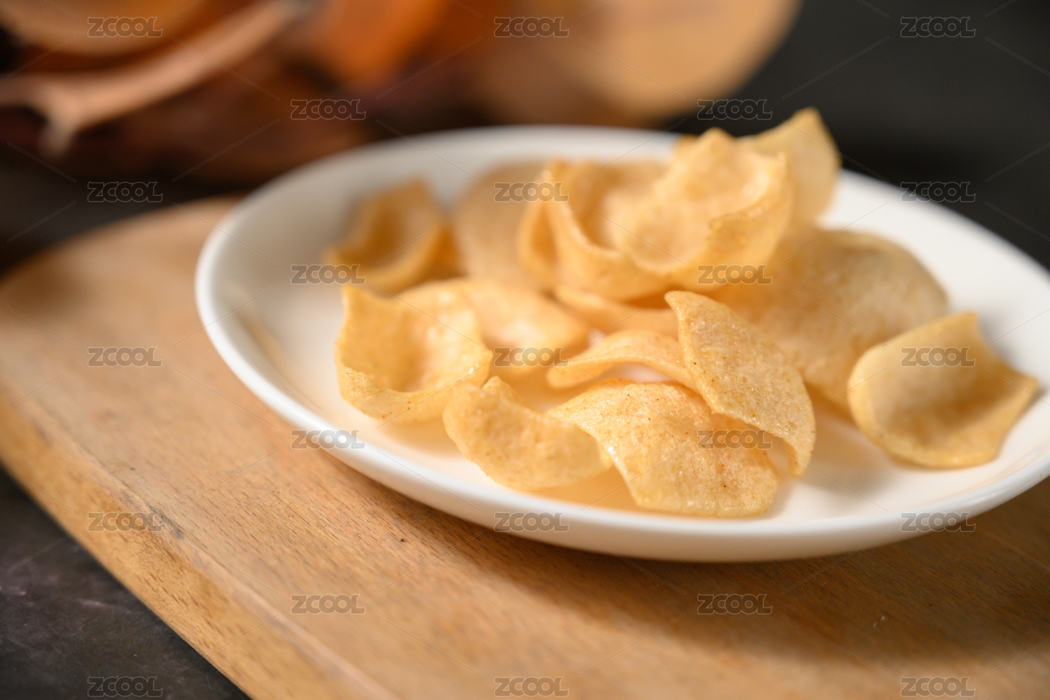 桌面上的盘子里的美味可口的菠萝蜜脆
