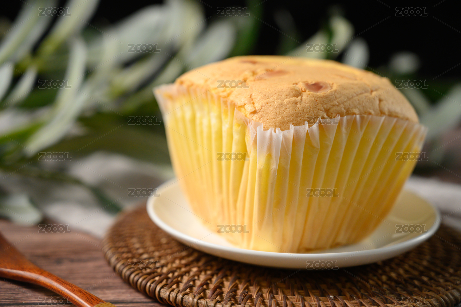 桌面上的盘子里的美味可口的戚风蛋糕