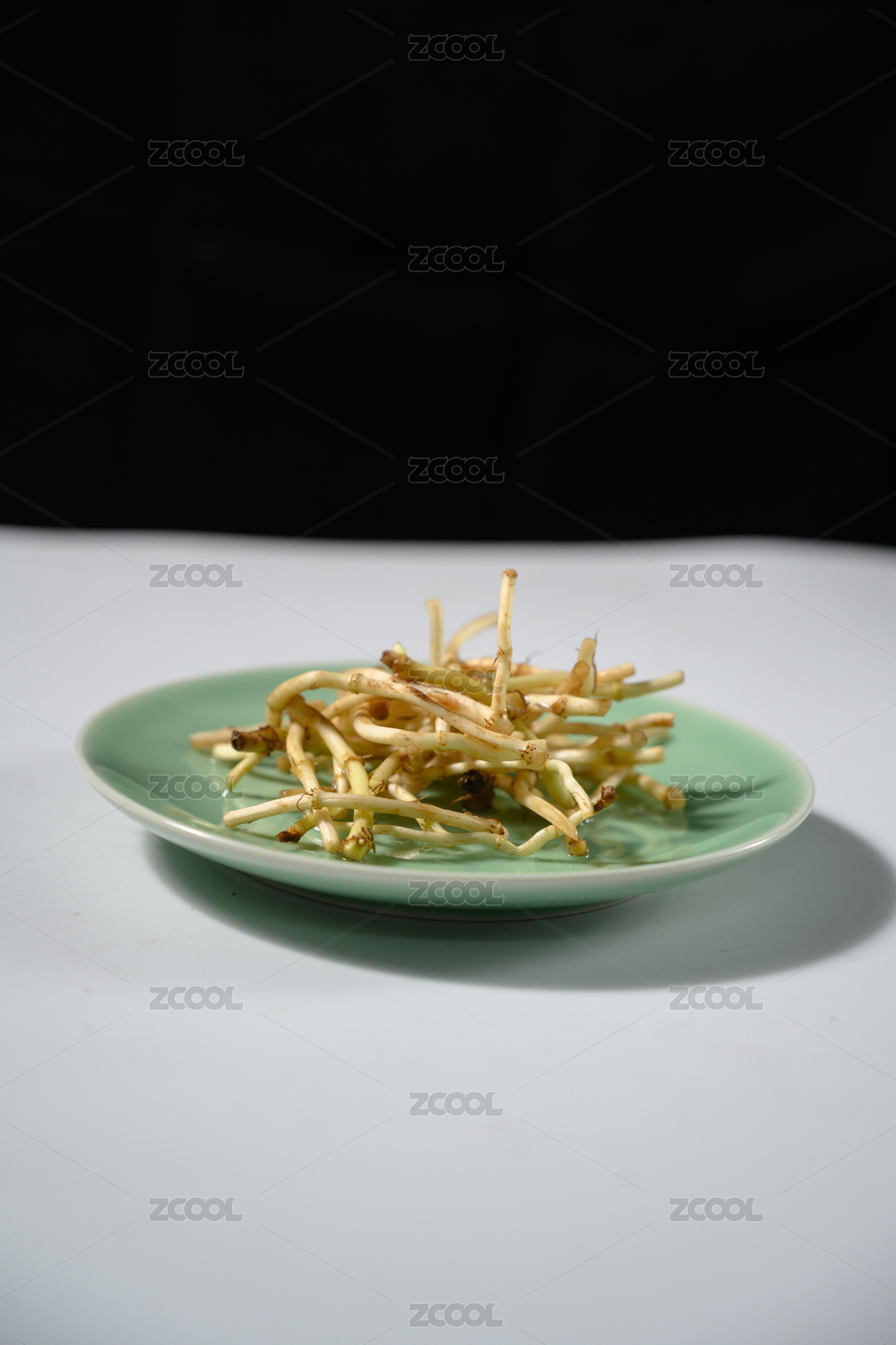 桌面上的盘子里的干爽的人参须