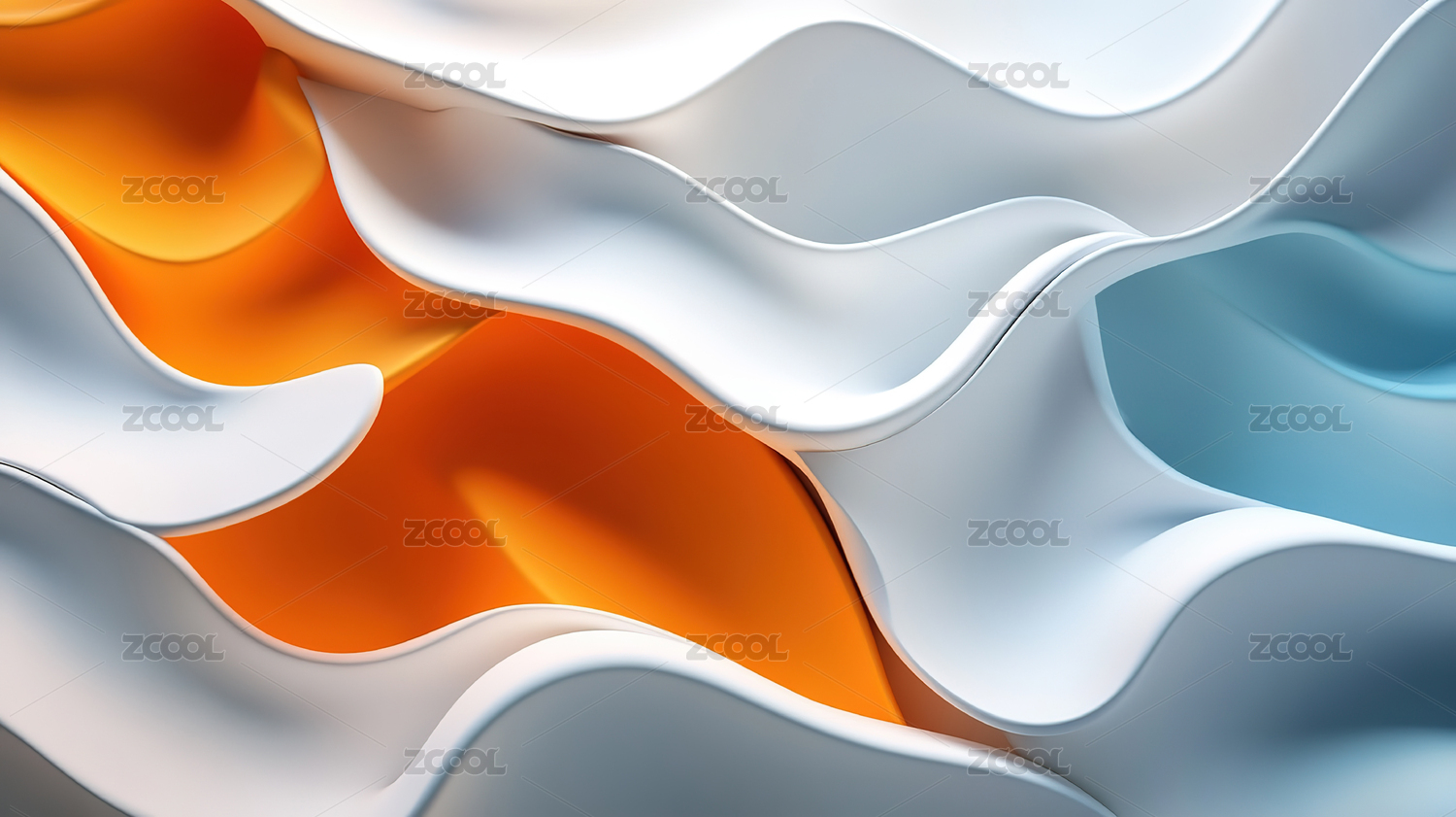 抽象蓝色橙色波浪形3D背景