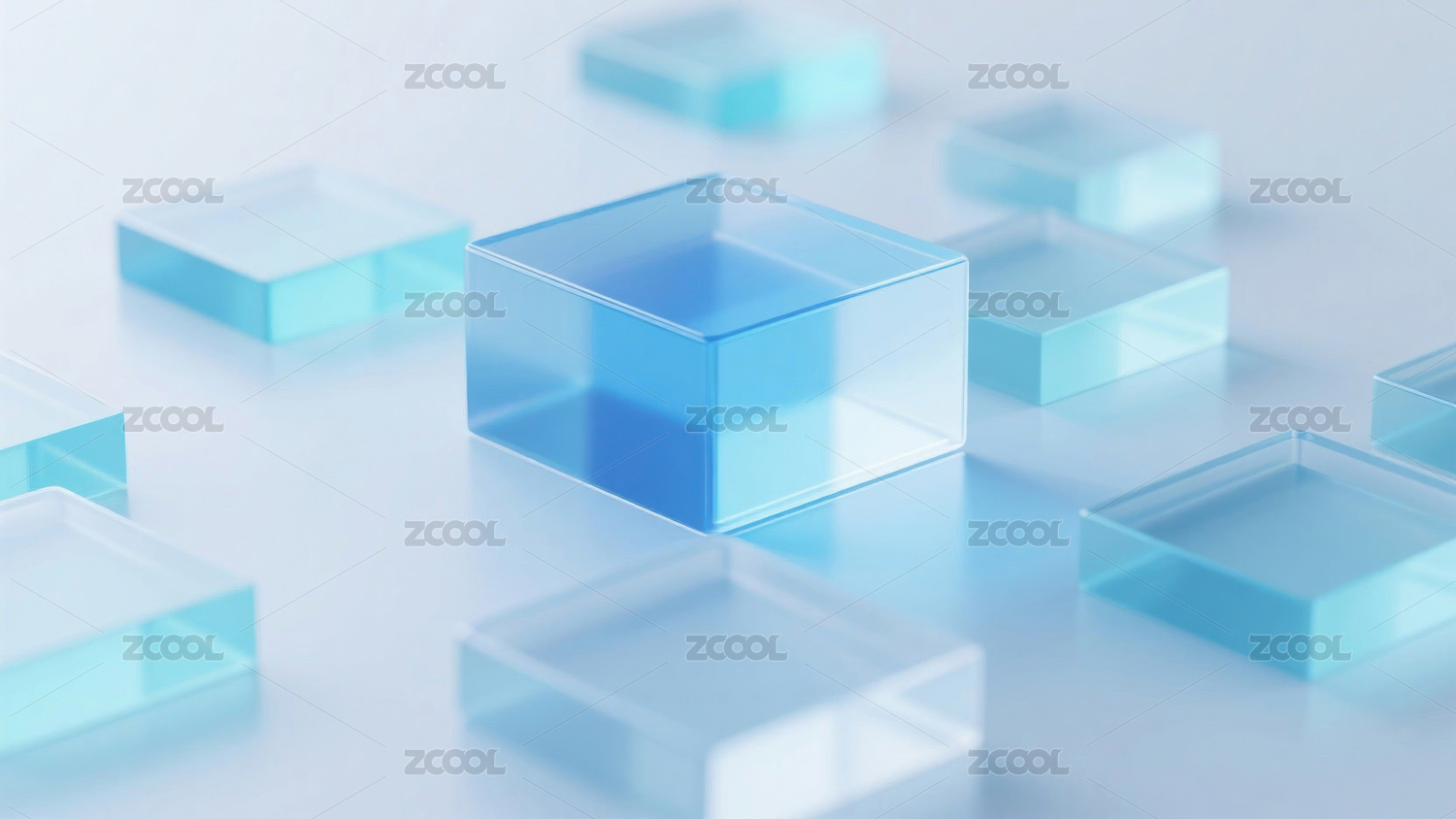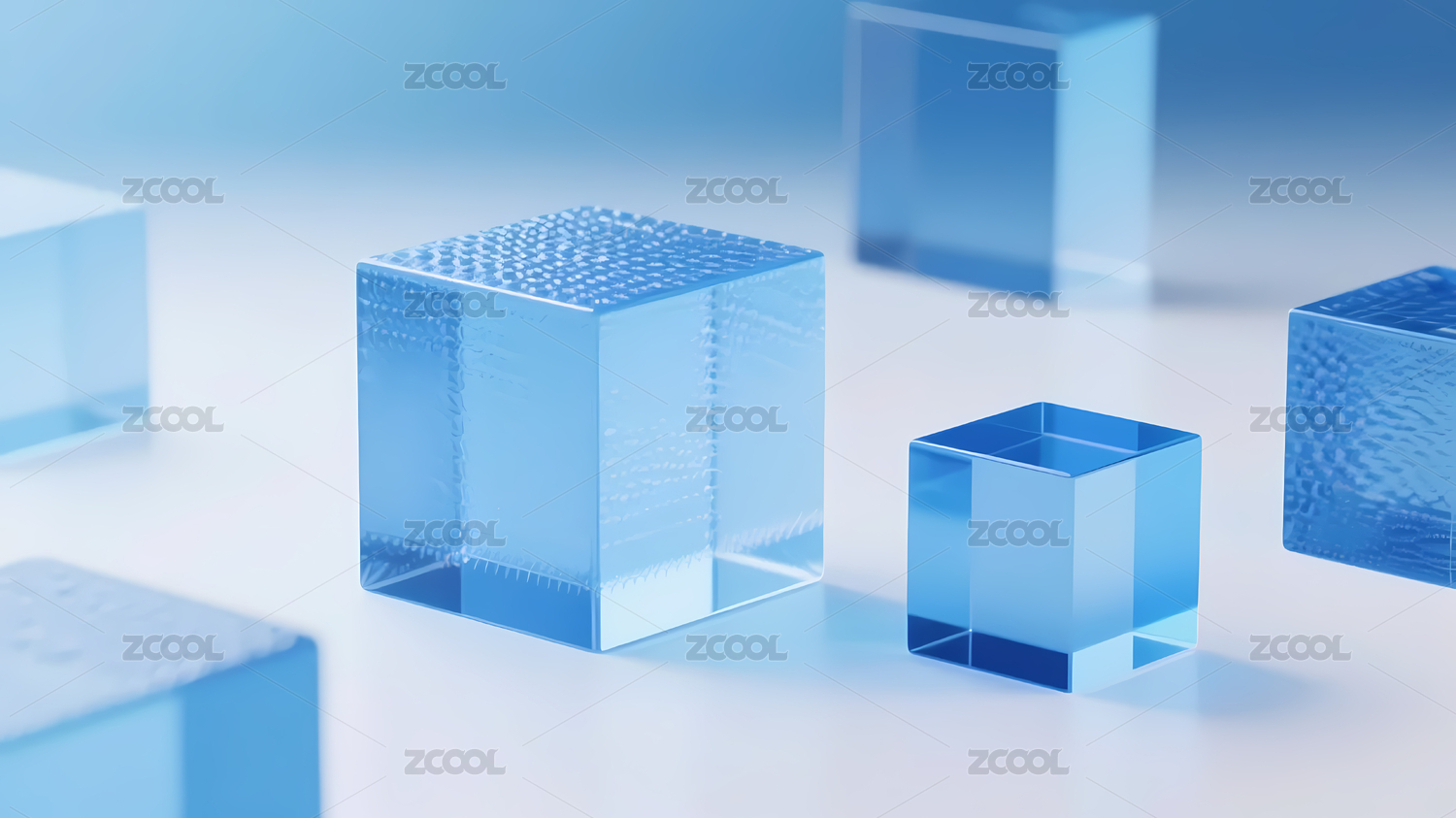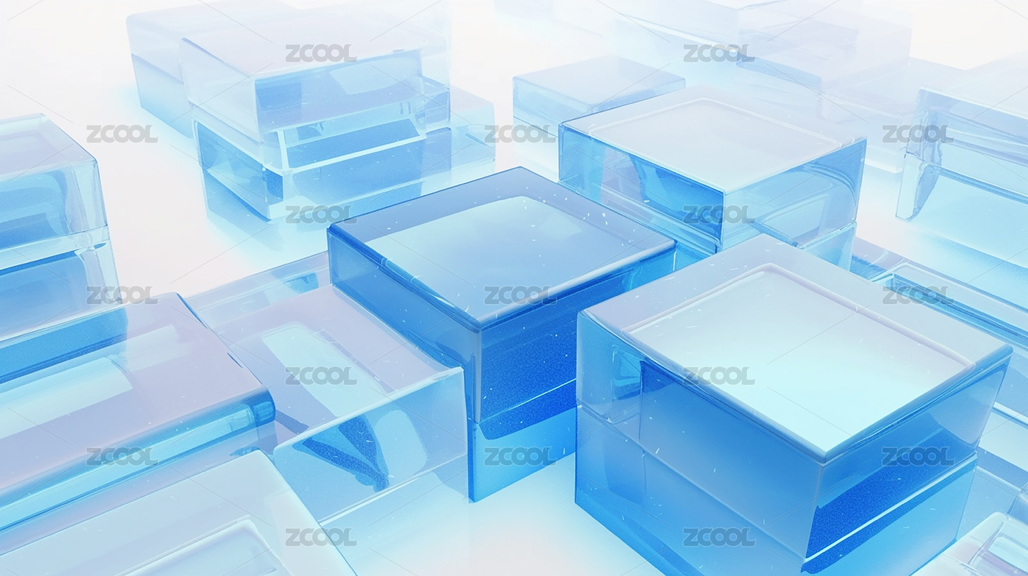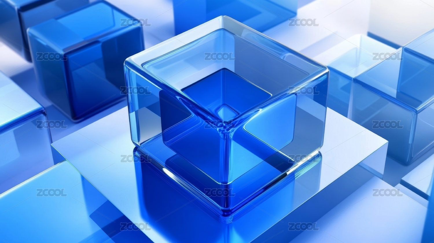 未来科技感蓝色水晶透明玻璃几何立方体背景
