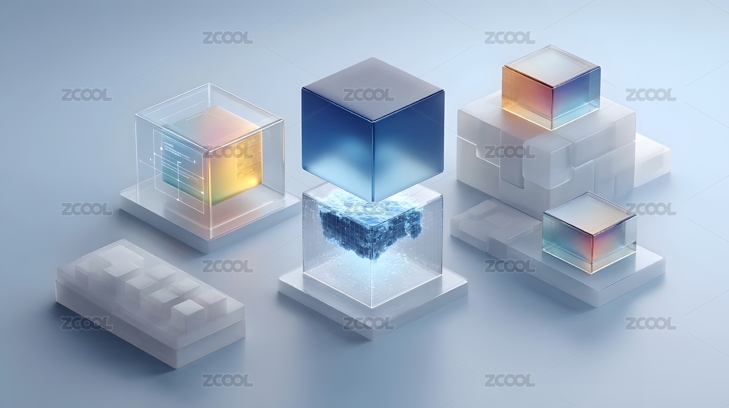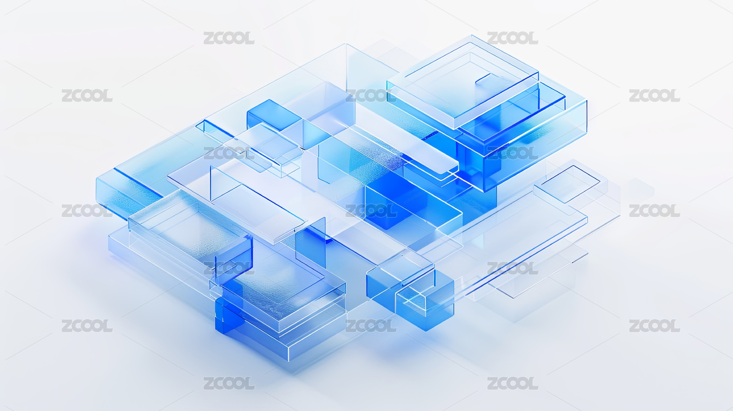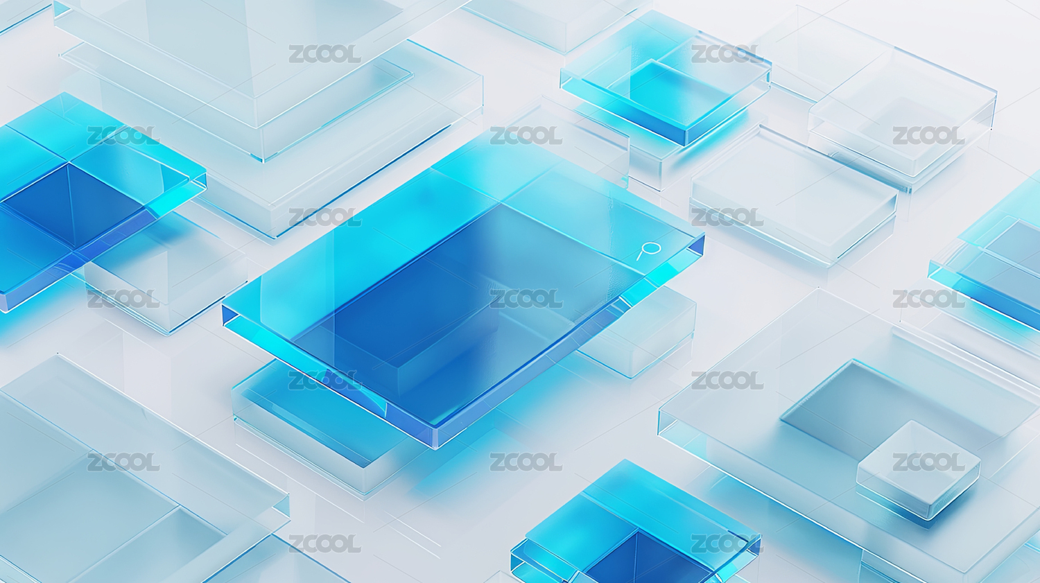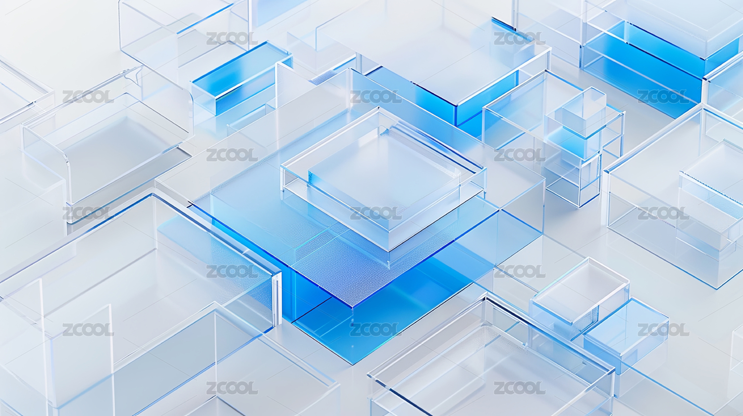未来科技感蓝色水晶透明玻璃几何立方体背景