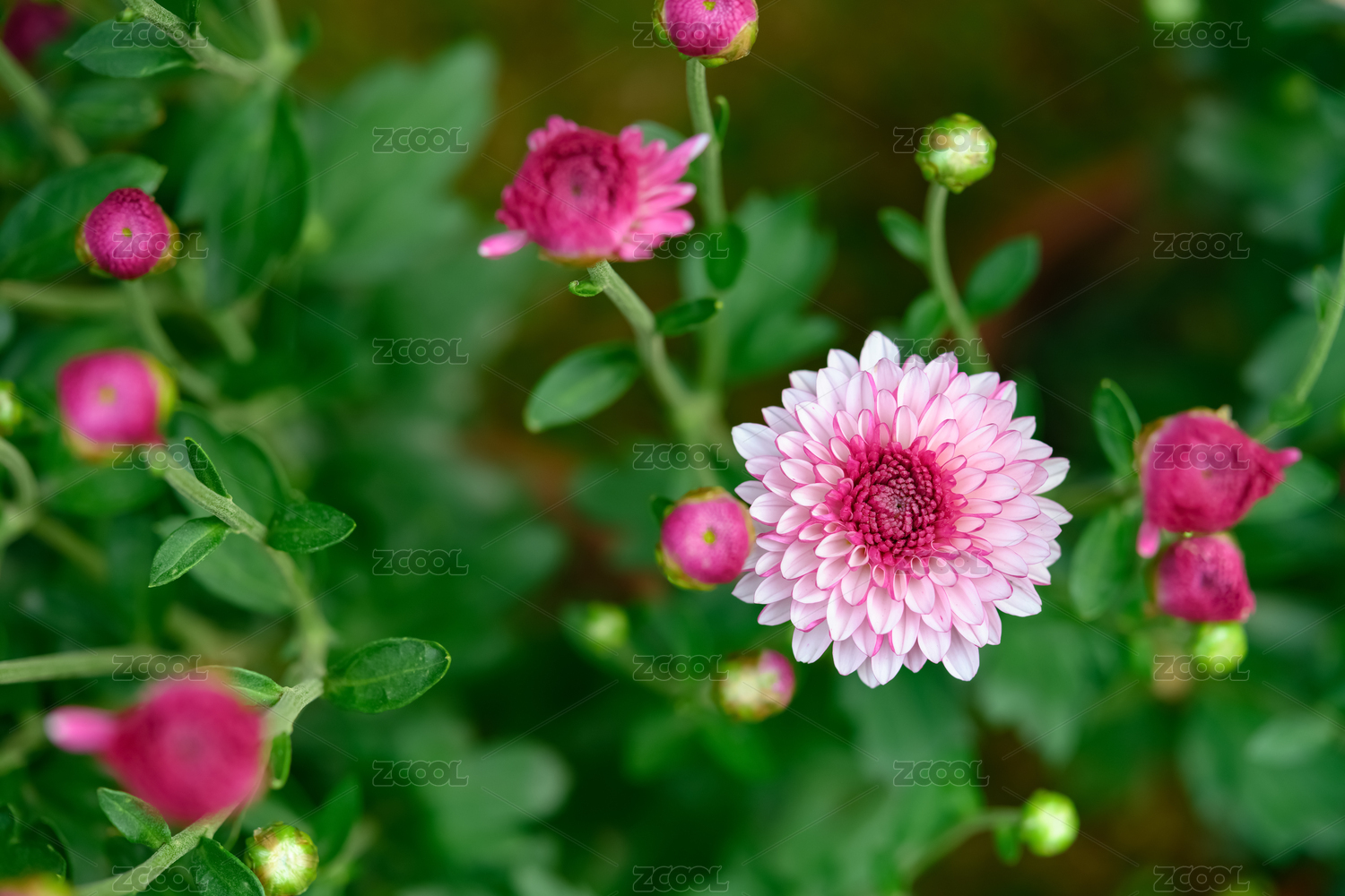 大自然里粉色的盛开菊花花卉特写