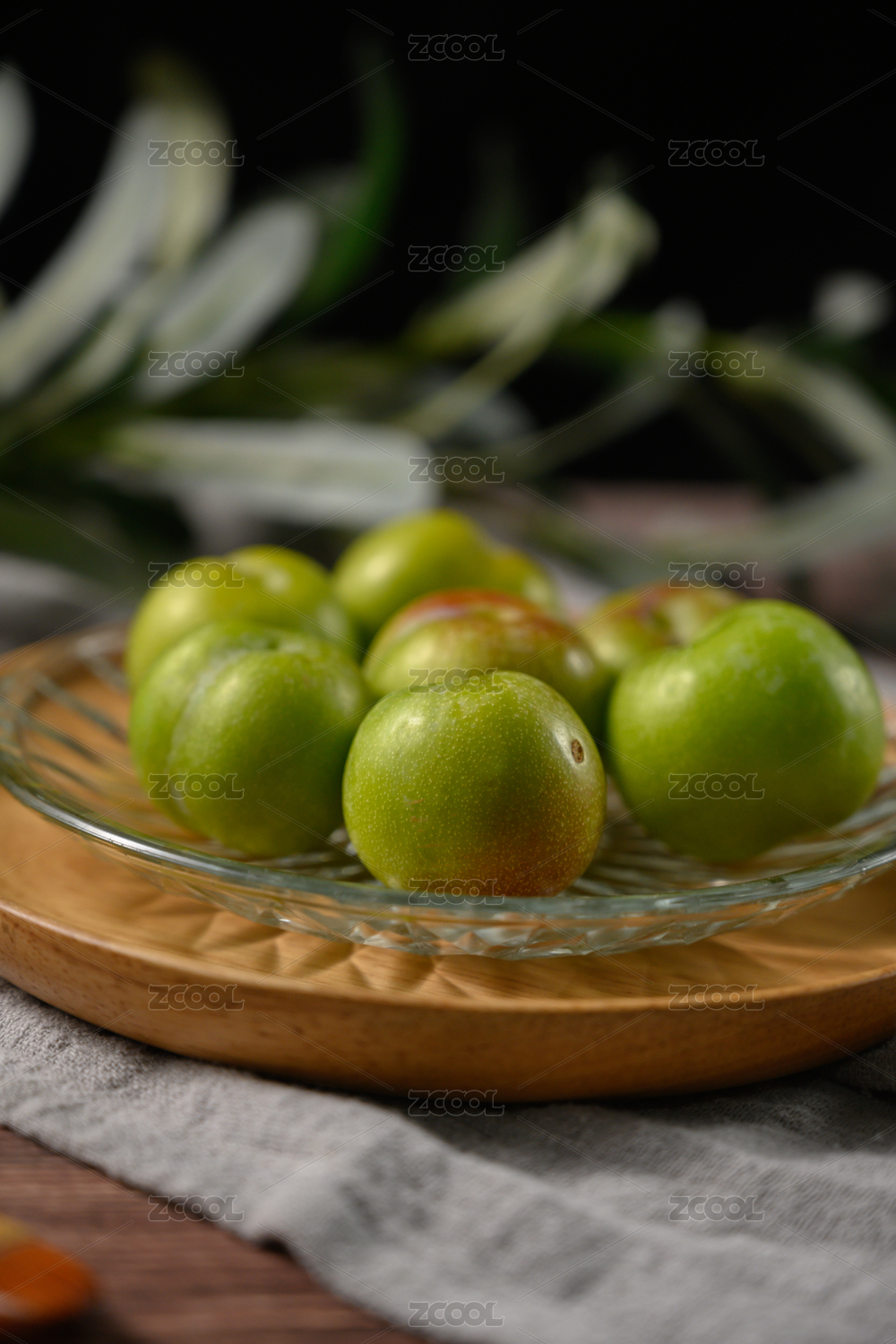 桌面上的盘子里的新鲜可口的青枣