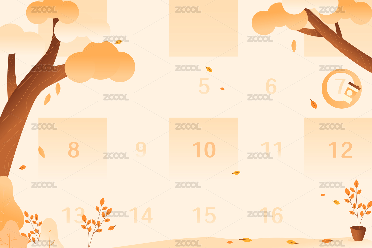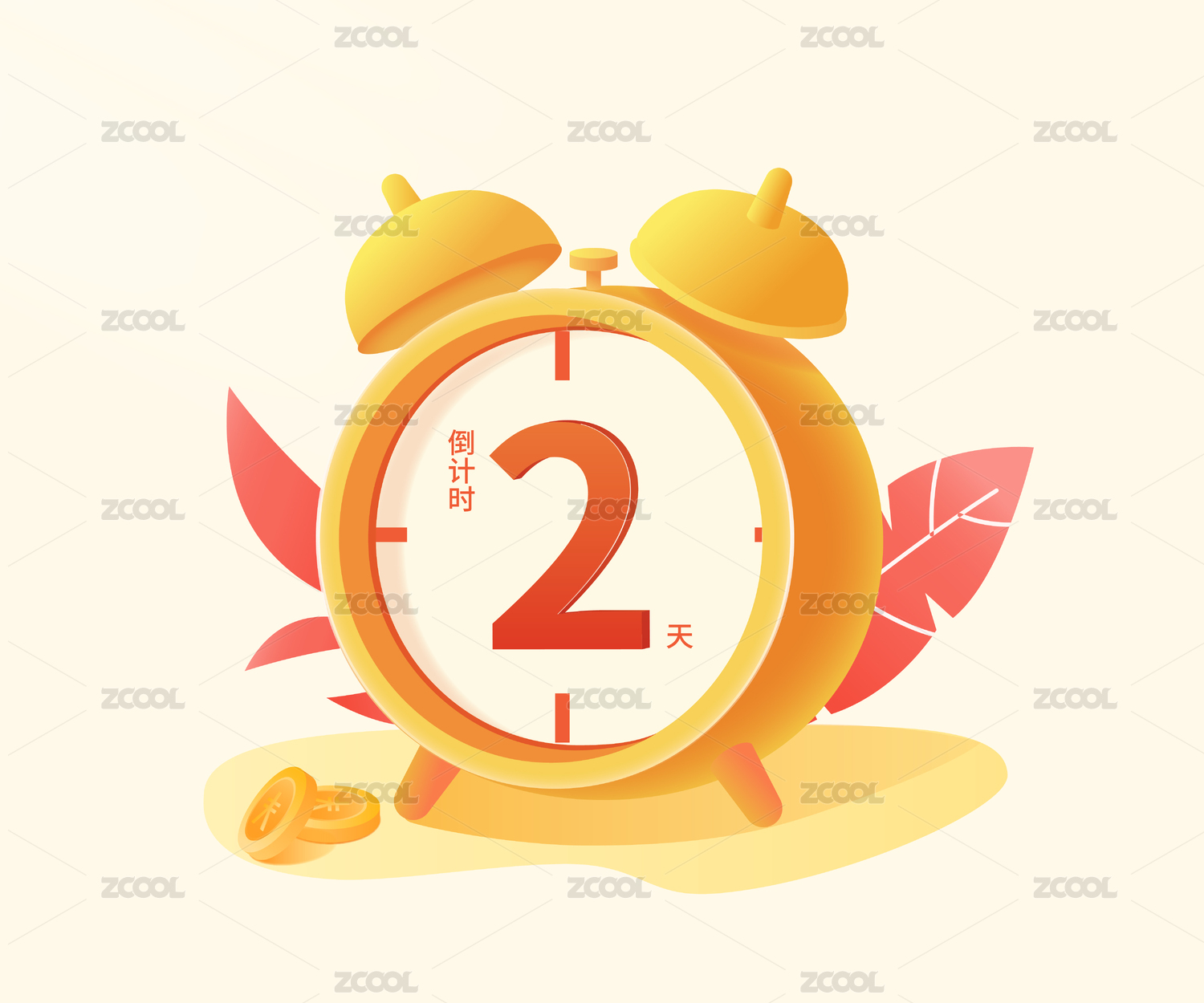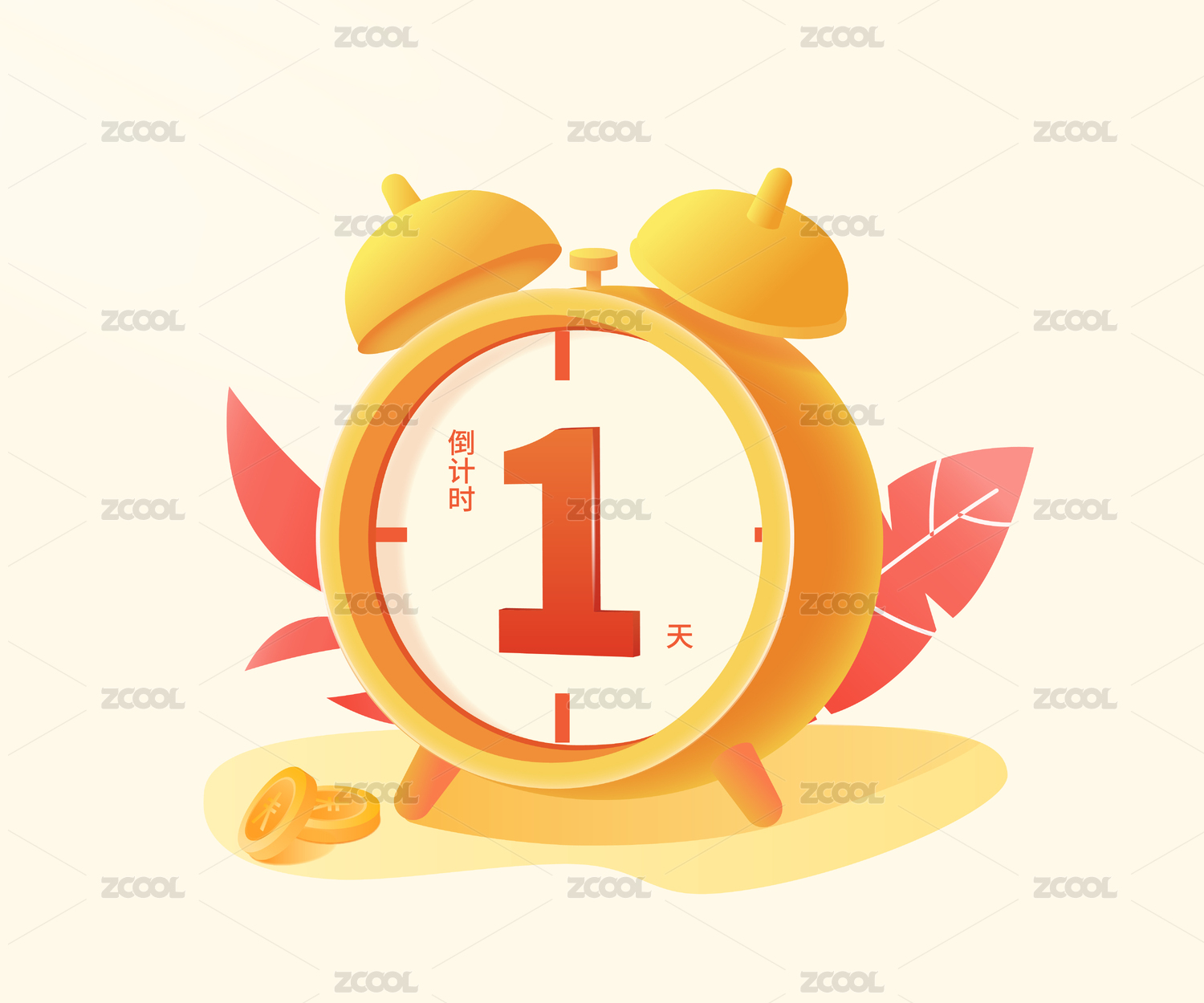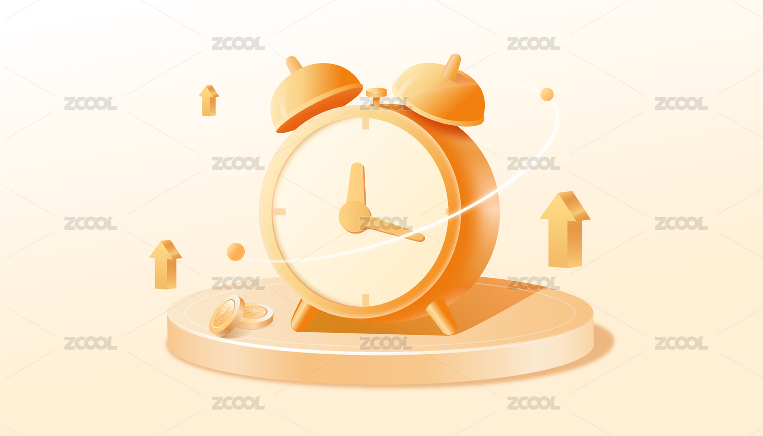 白背景上绿闹钟配橙铃铛和绿叶装饰