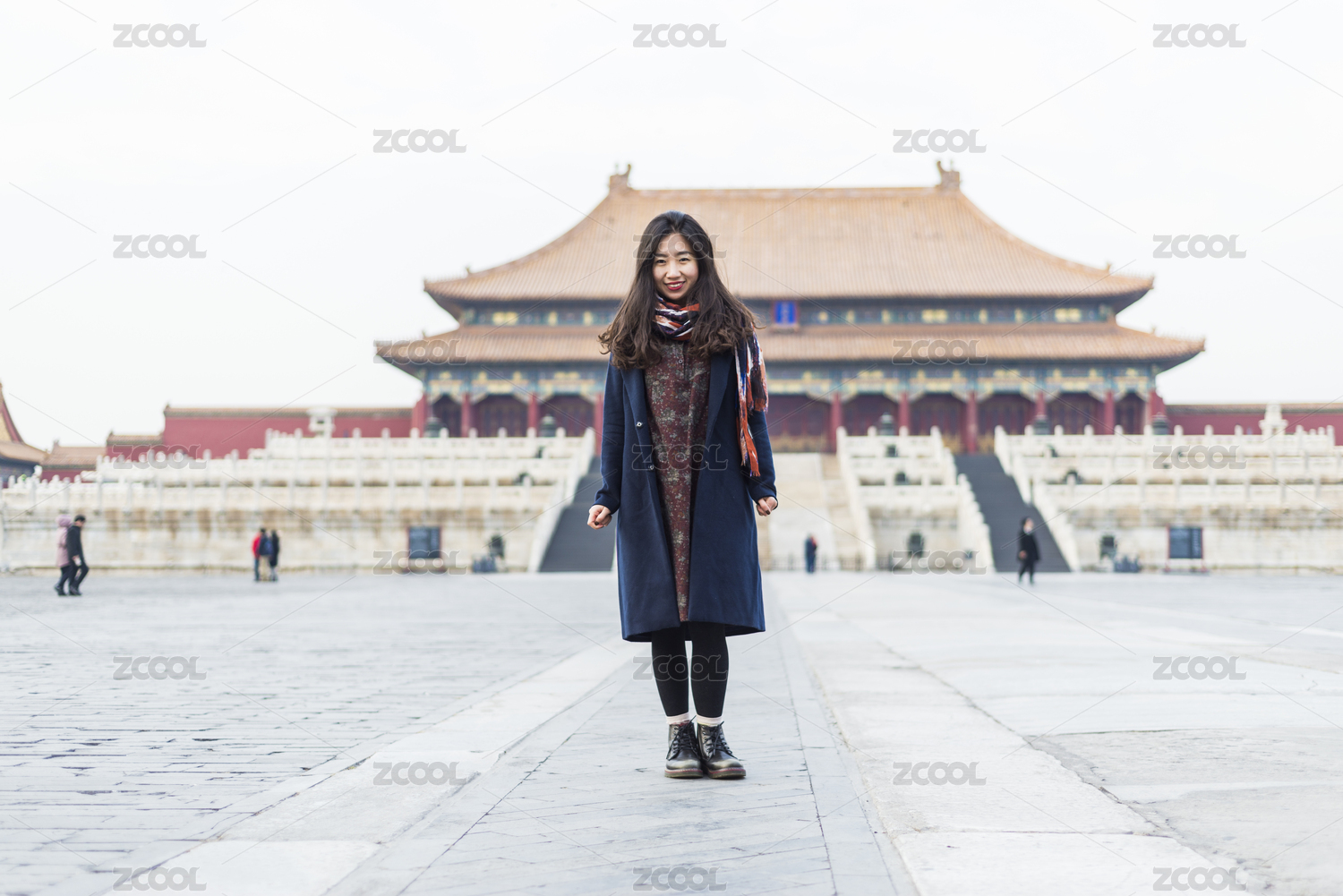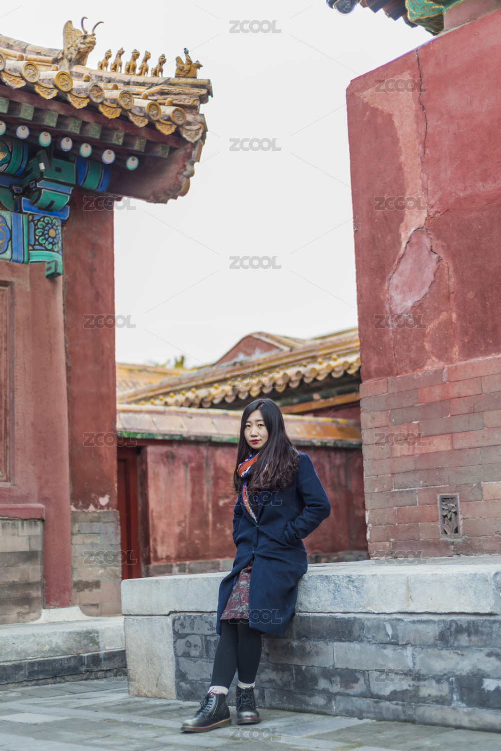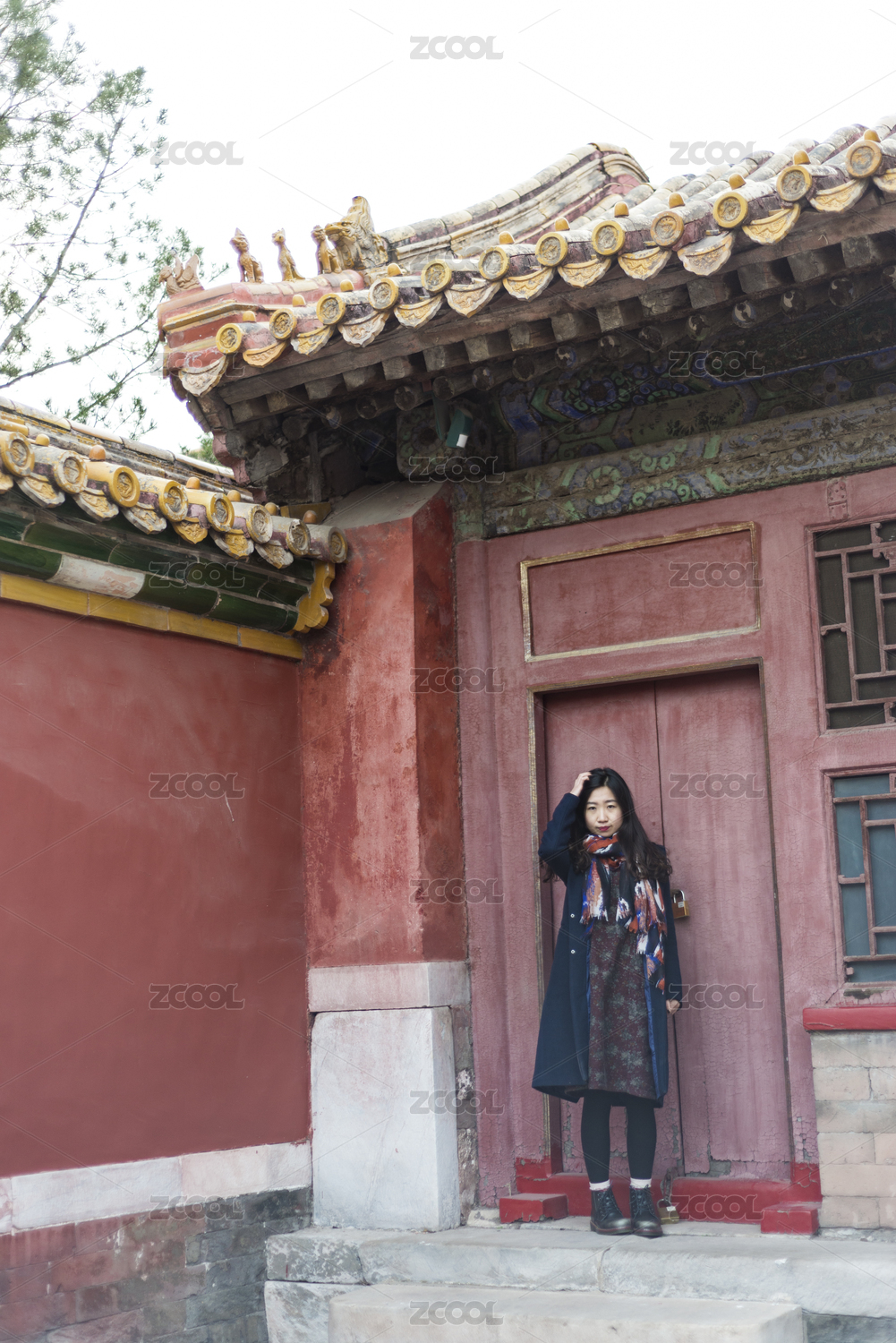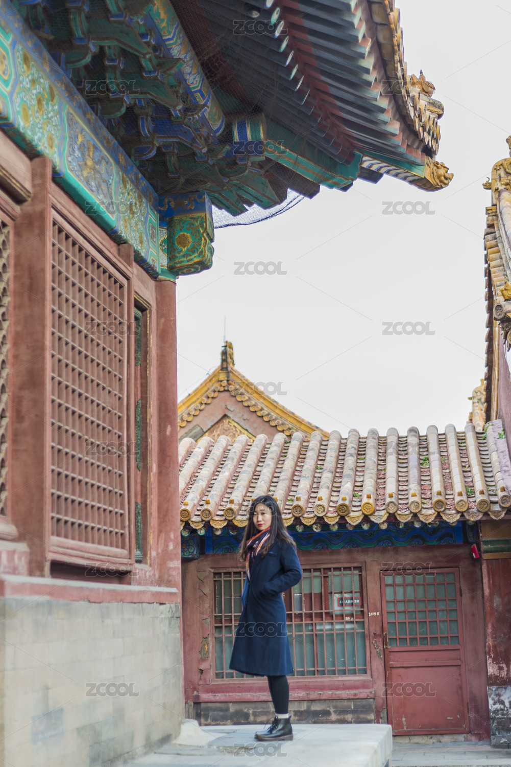 初冬游览北京故宫博物院的亚裔女性