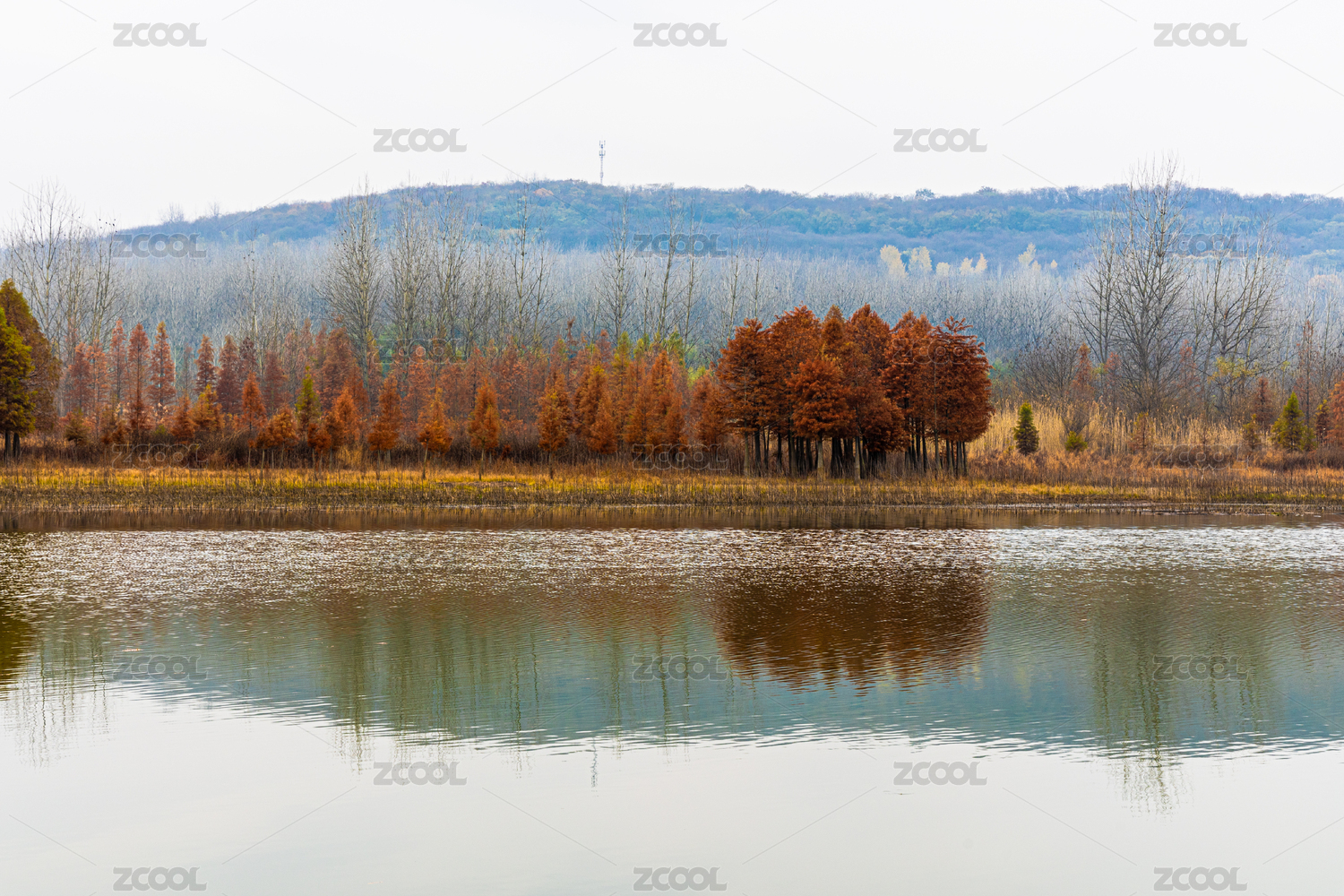 云南昆明甸尾湿地冬季美丽的水杉林自然风光
