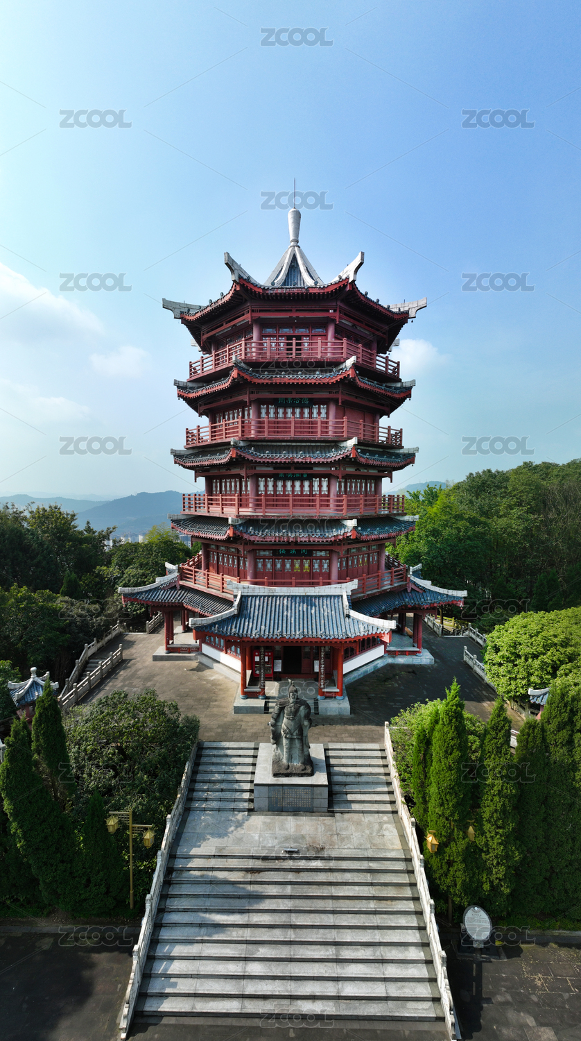 中国广东江门鹤山大雁山纪元塔航拍风光