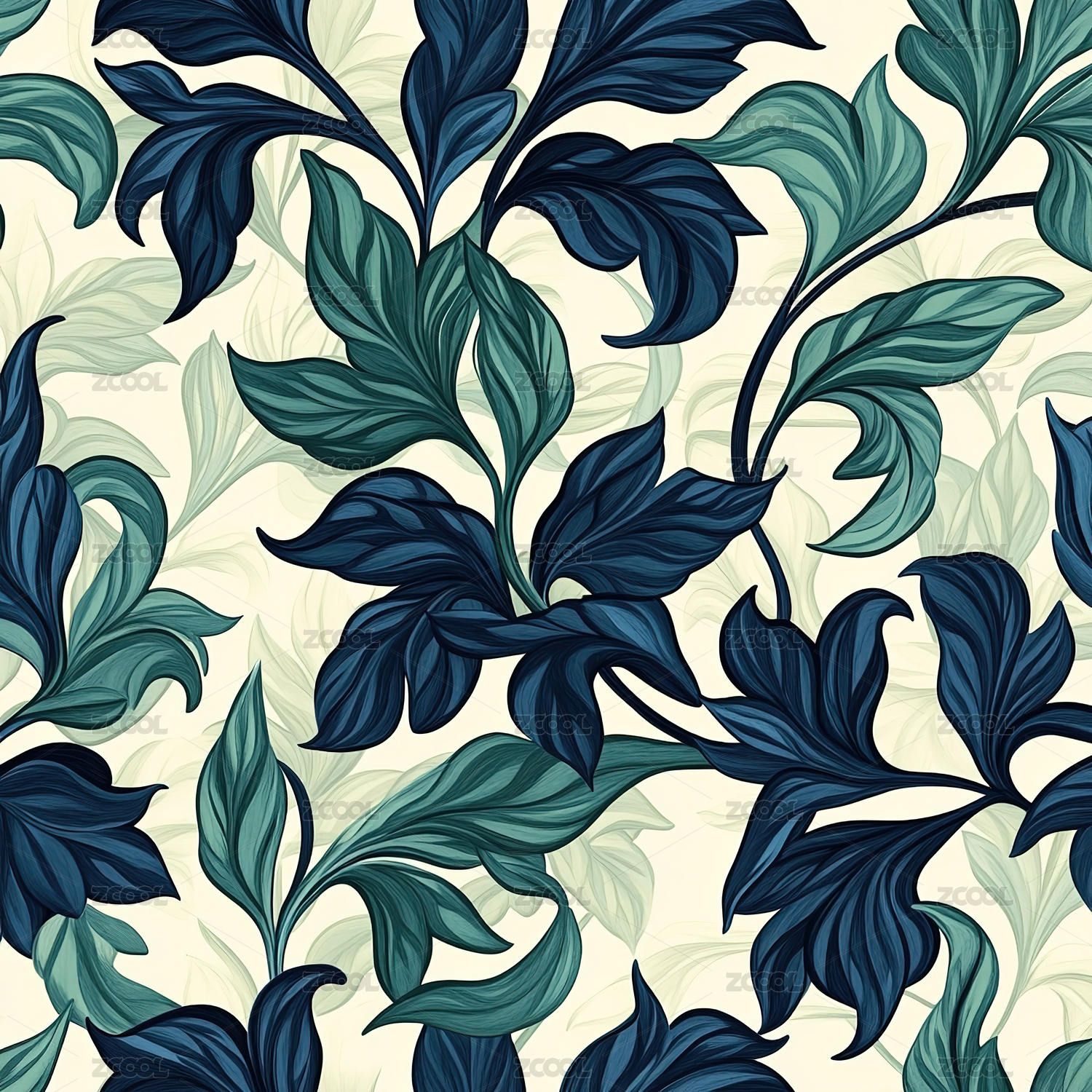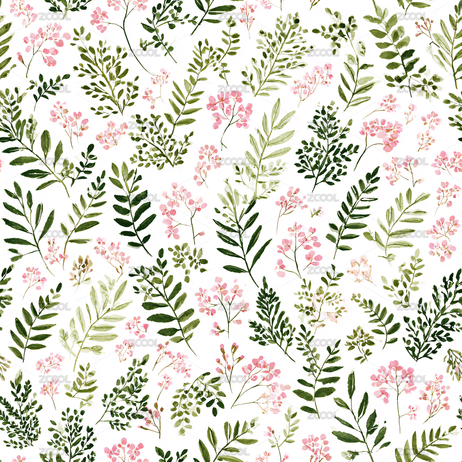 热带图案无缝纹理手绘妖怪叶子水彩效果
