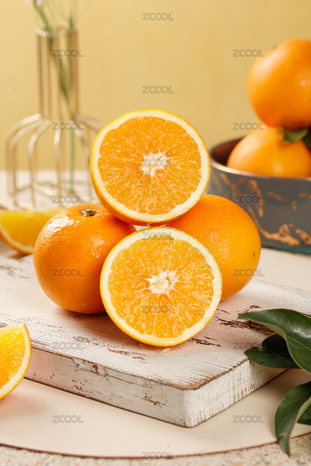 木底垫子上放着一盘赣南脐橙和脐橙果肉