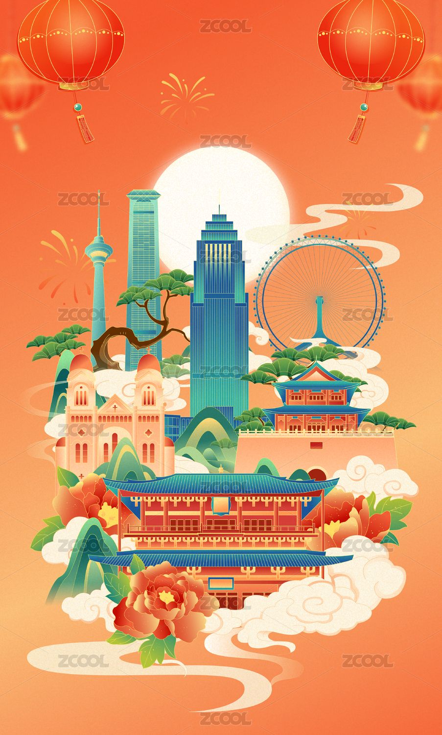 建筑,旅游,城市,风景,中国文化,插画,地标,旅行,商务,国风