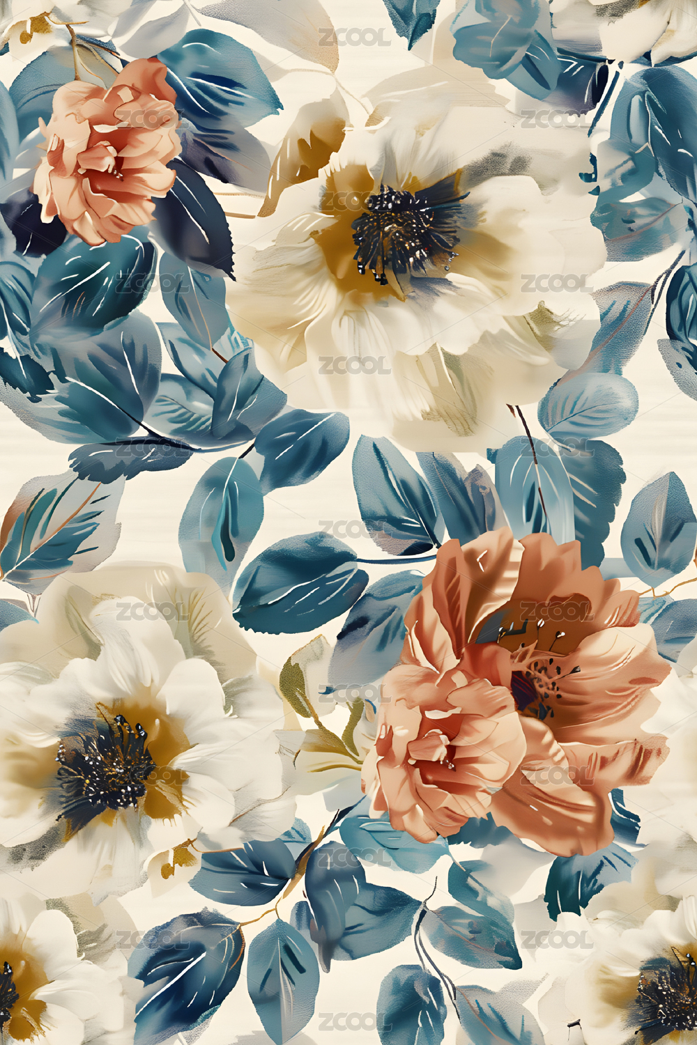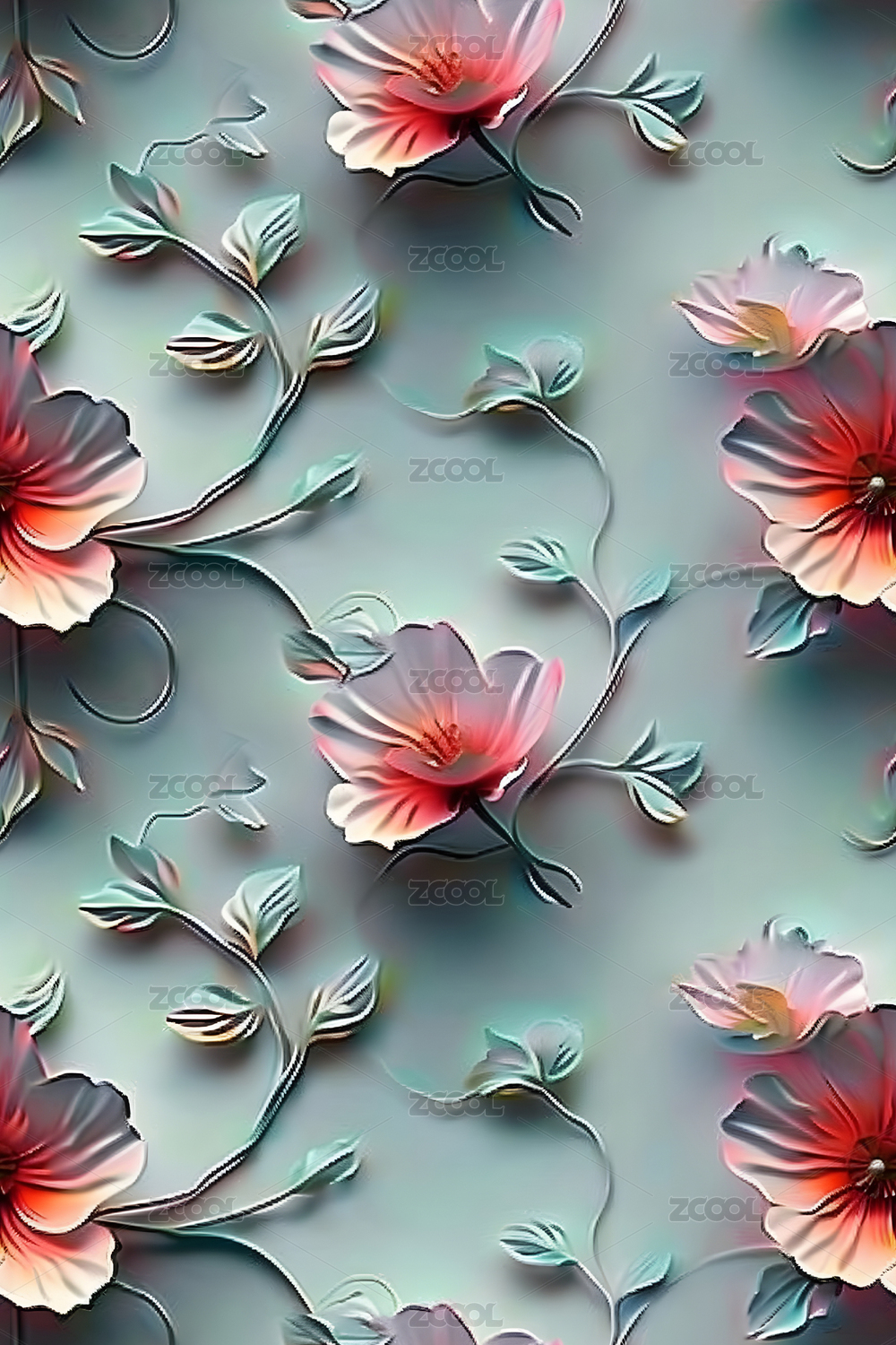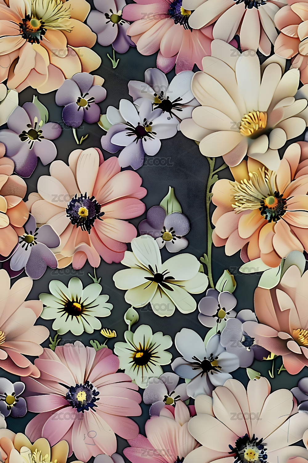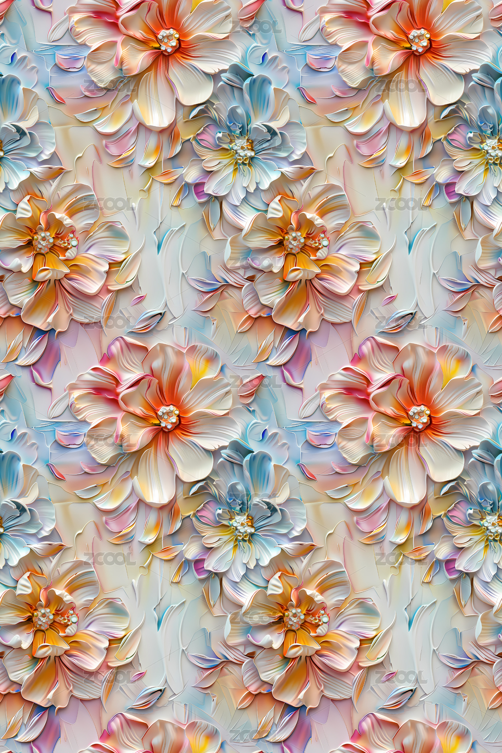 四方连续图数码花卉