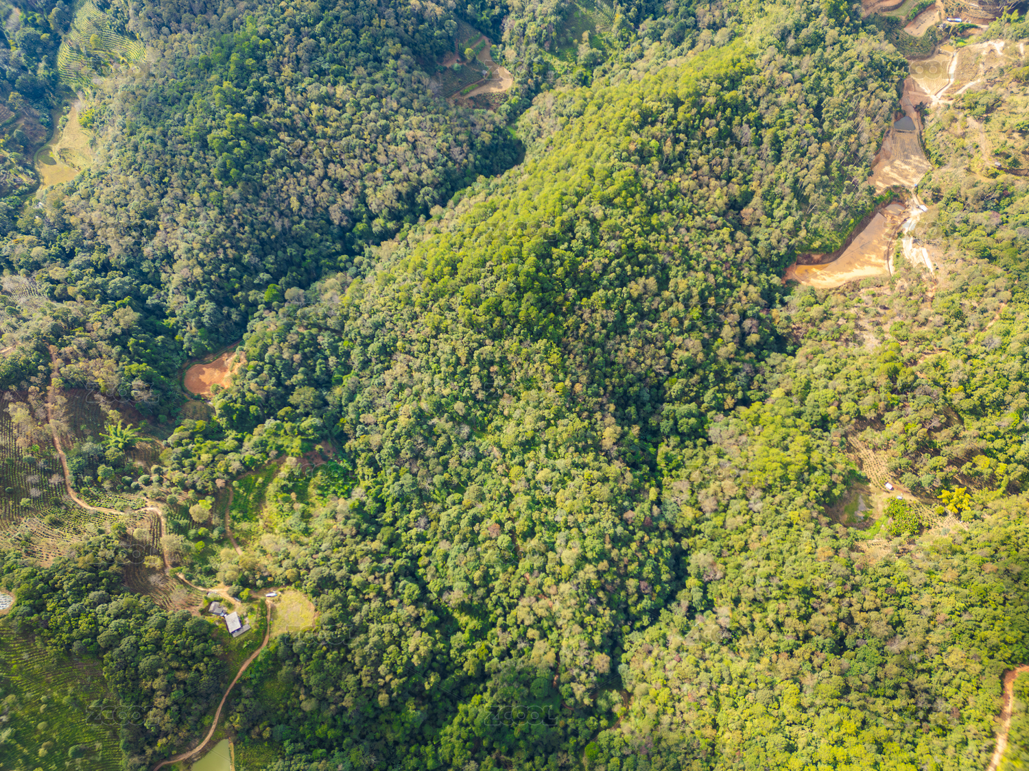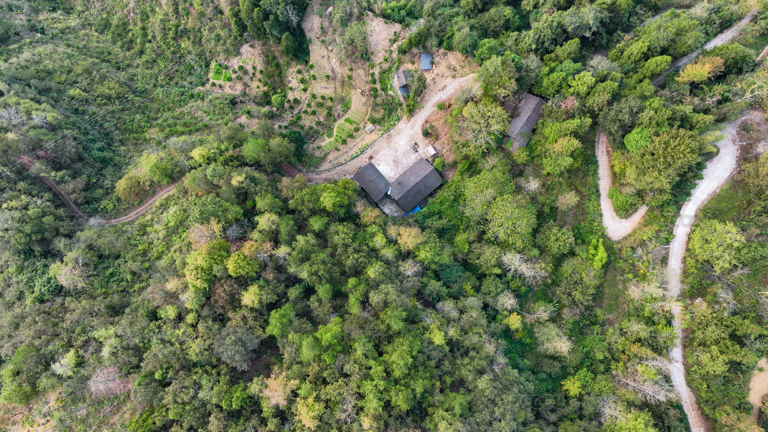 四川绵阳平武山城北山视角掩映在半山腰的民宅