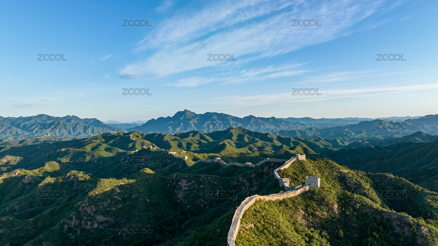 夏季夕阳照耀中国金山岭长城烽火台好风光