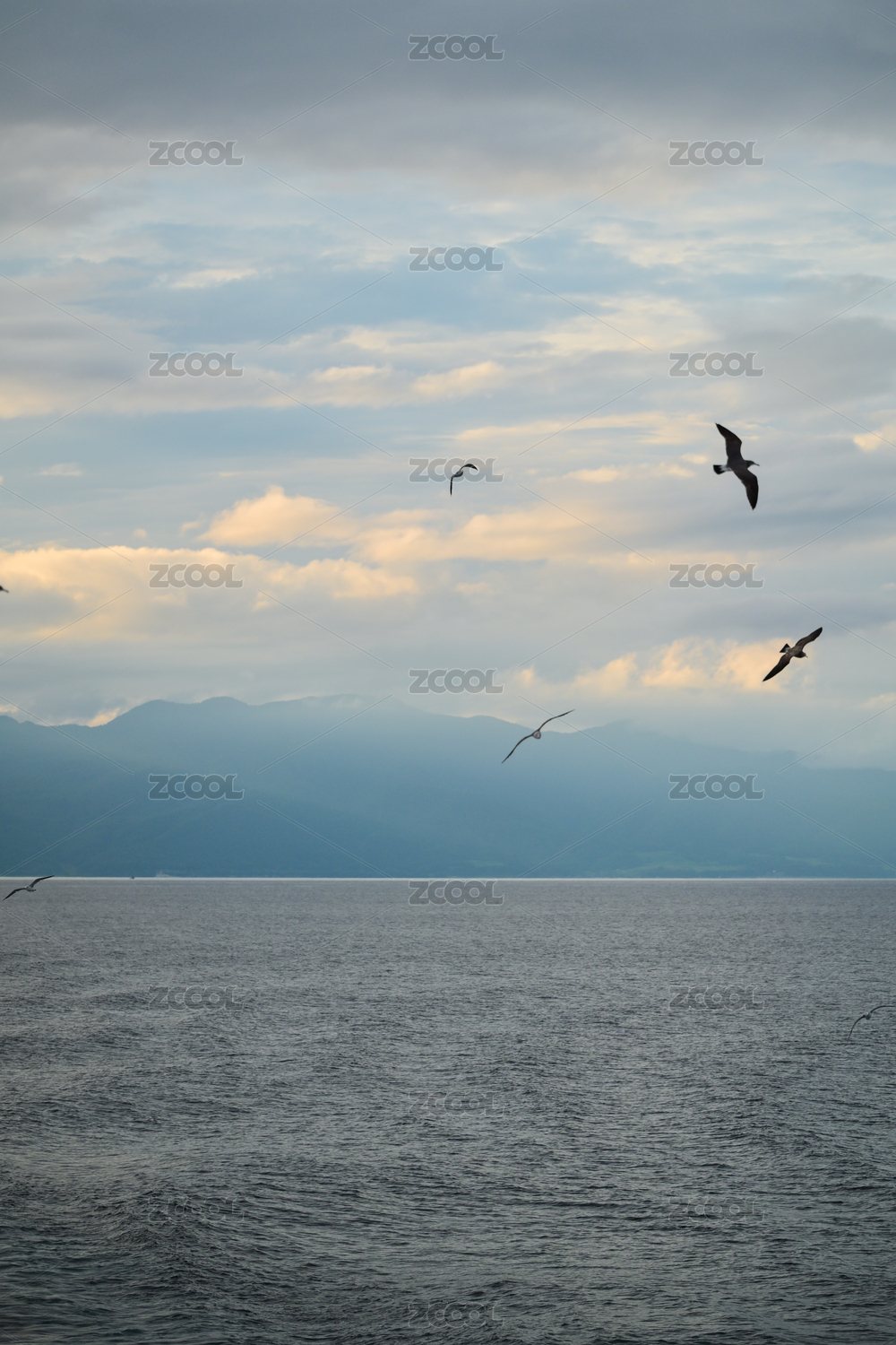 中国,云南,洱海,海鸥,苍山,飞翔,天空,云,日落,生态