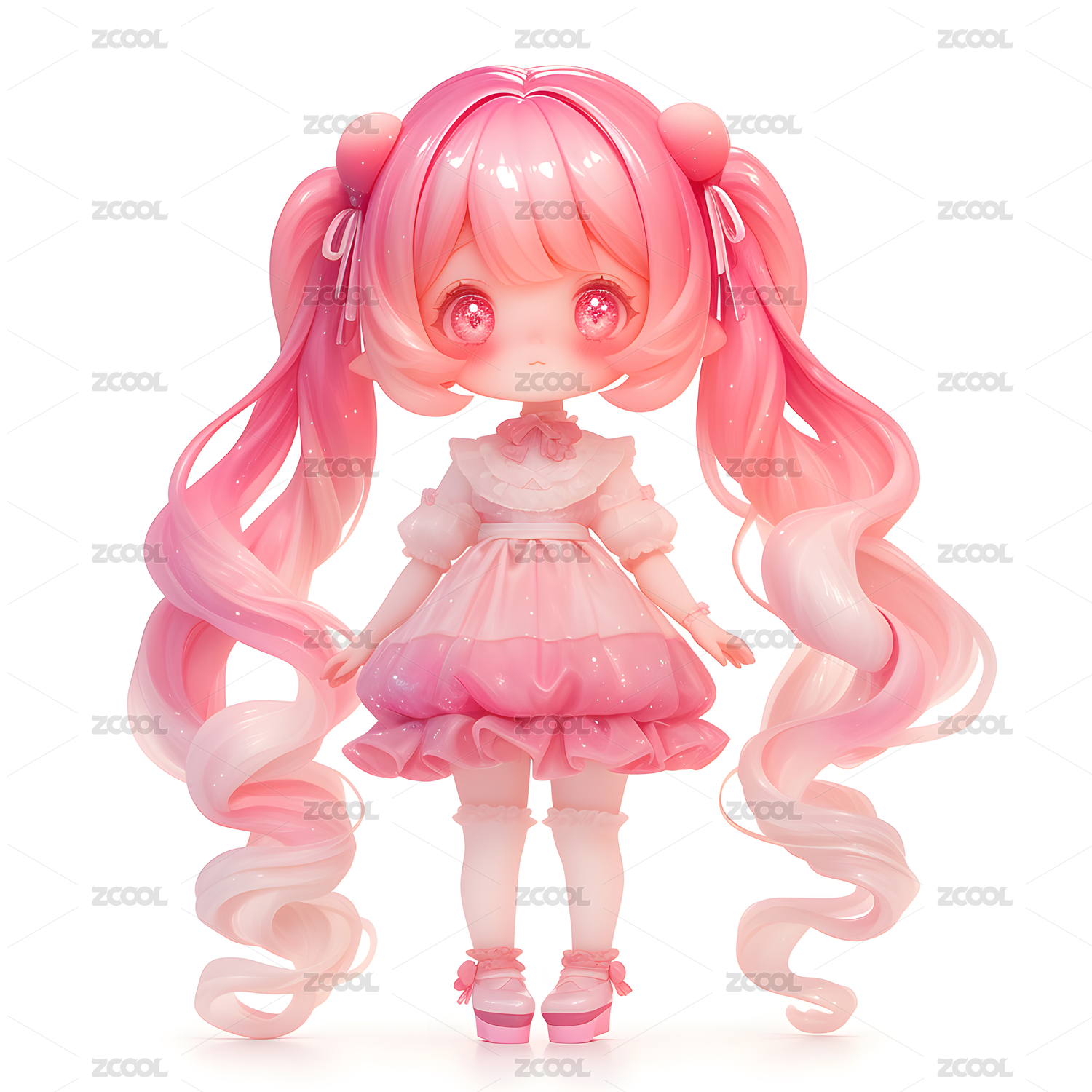 Q版粉色裙子吉祥物ip形象兔子女孩