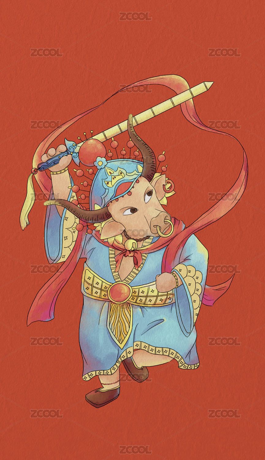 水浒传英雄人物插画108将呼延灼卡通手绘
