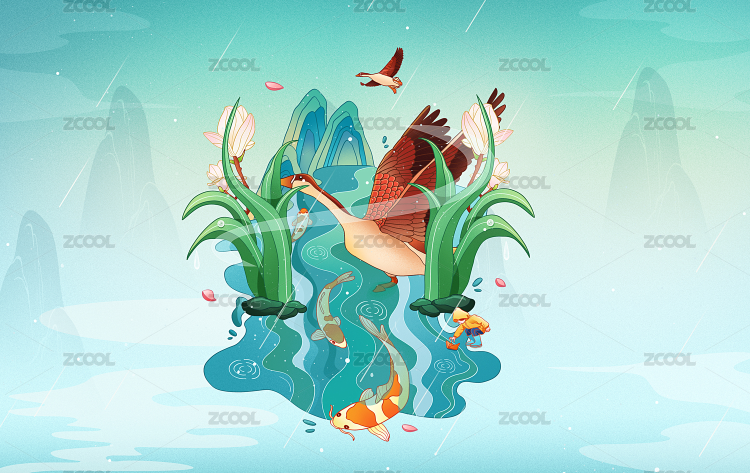 中国风二十四节气雨水插画