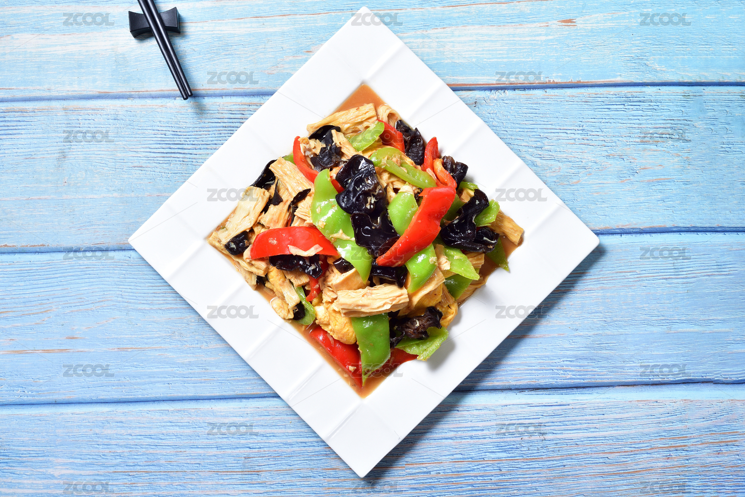 一盘青椒木耳腐竹