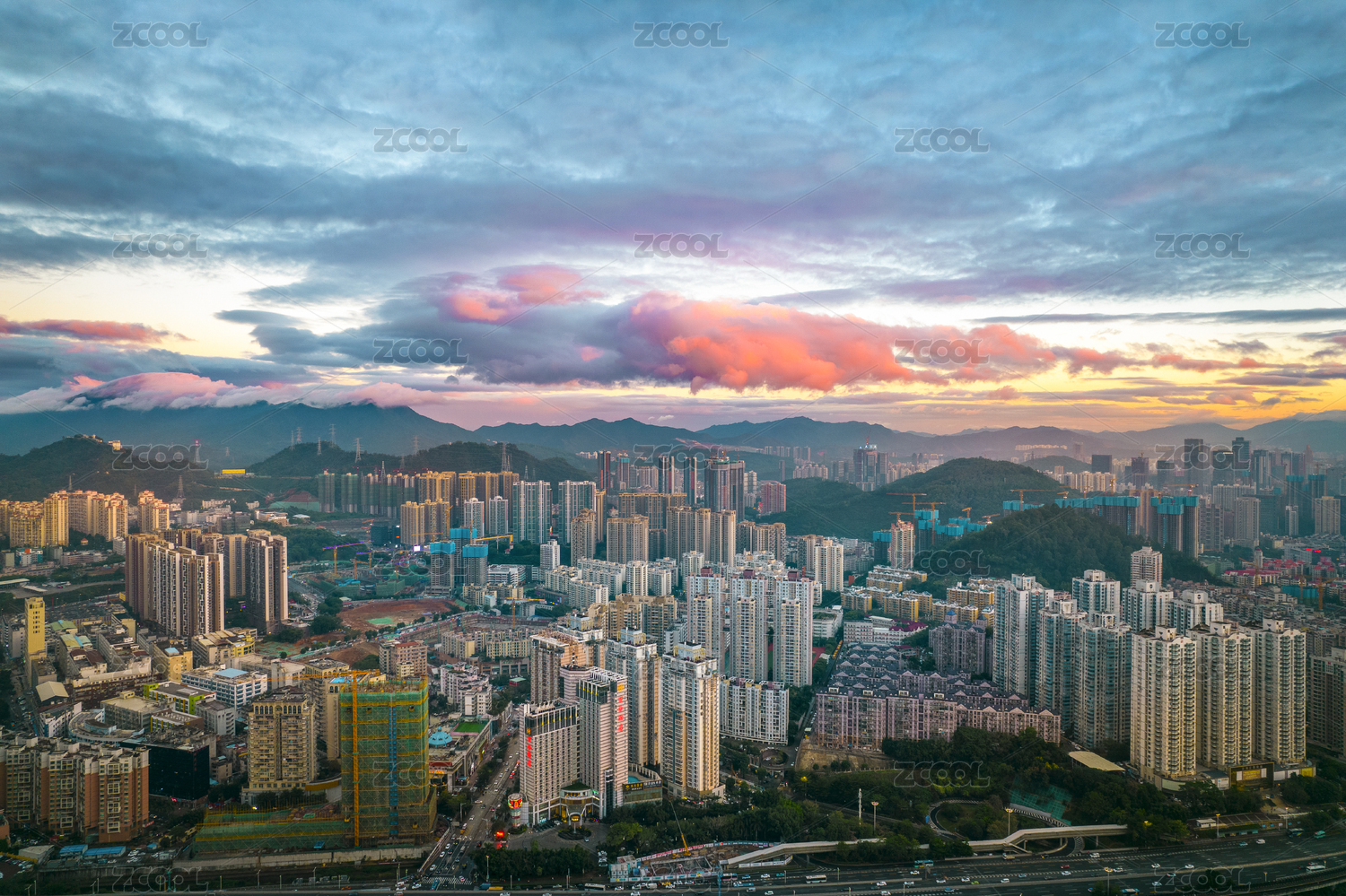 粤港澳大湾区广东深圳龙岗布吉日落晚霞风光