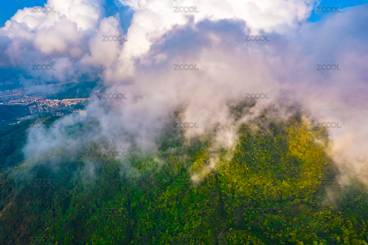 广东深圳盐田,日落时被云雾遮住的梧桐山
