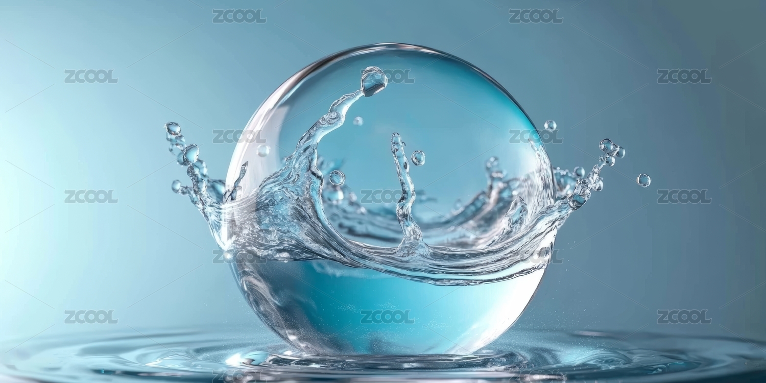 水滴,浅蓝色背景,护肤品,三维效果,水珠,水球