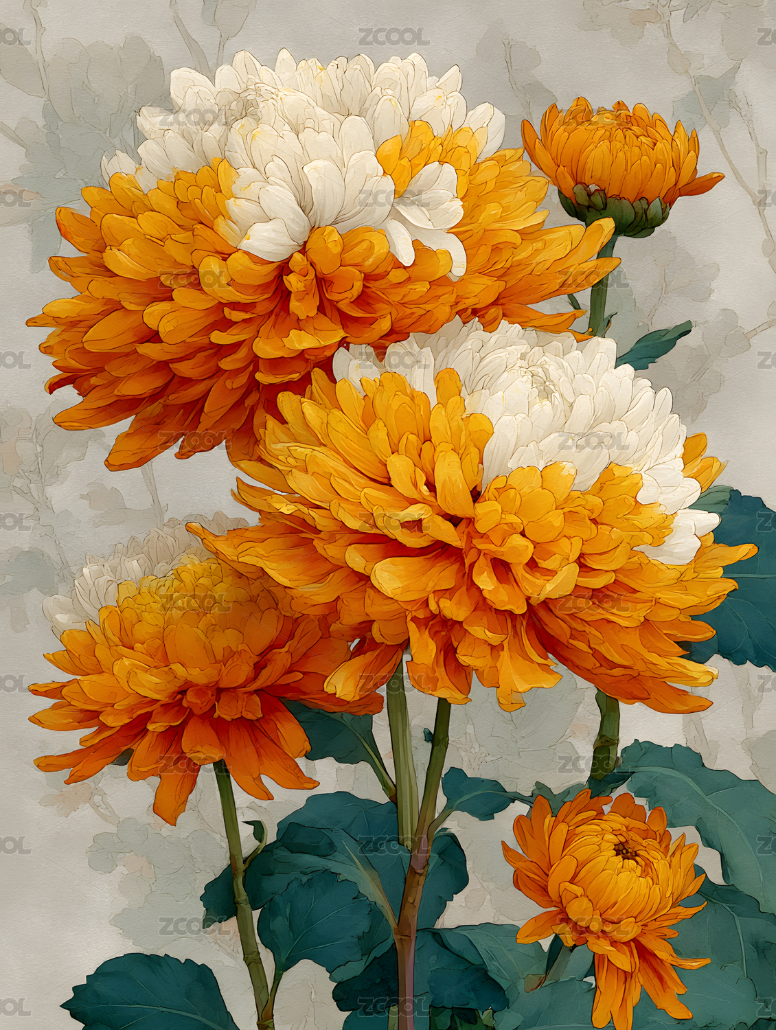国潮菊花植物插画