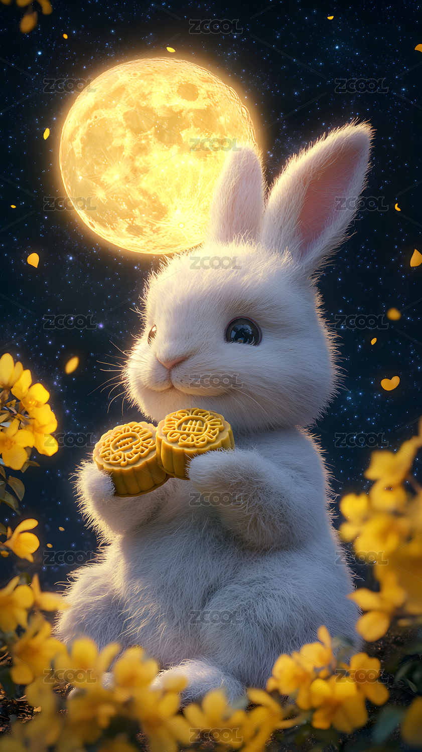 卡通,可爱,3D,小兔子,月饼,中秋,动物