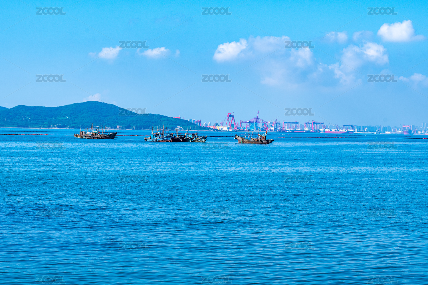 城市海岸线港口码头船只