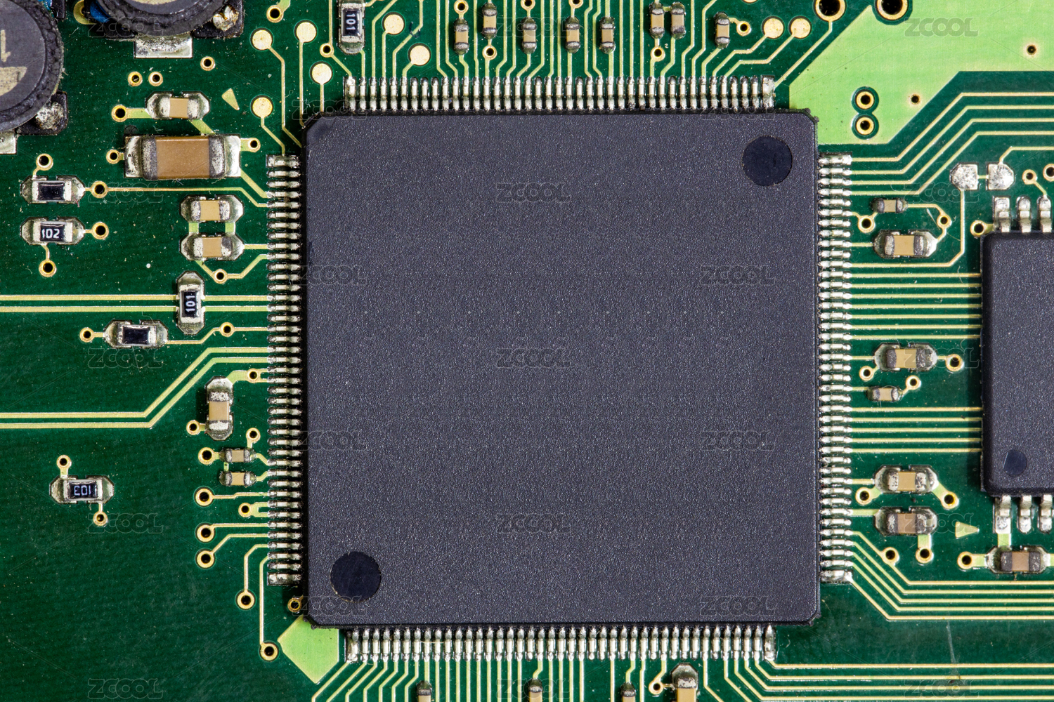 中央处理器芯片在电路板上,科技概念
