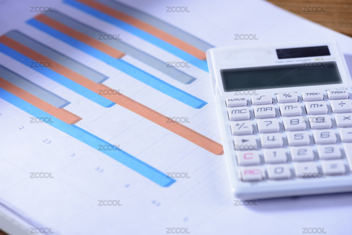 金融经济数据增长概念——放在财务数据报表上的计算器