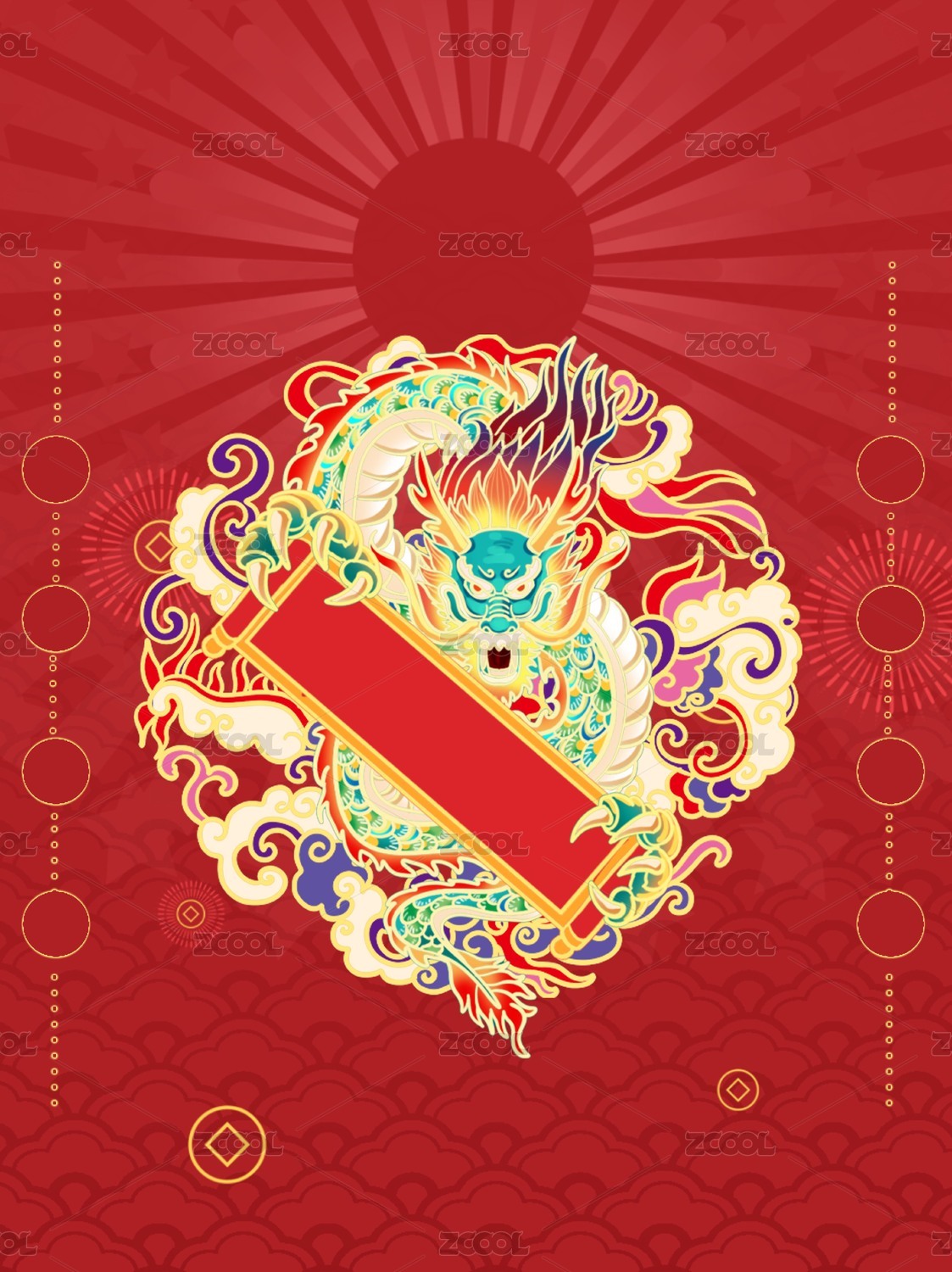 十二生肖龙中国红传统纹样矢量插画红包海报