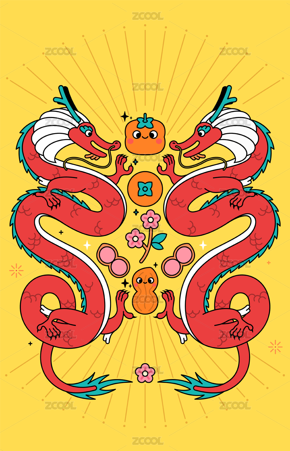 扁平龙年简约红色包装插画