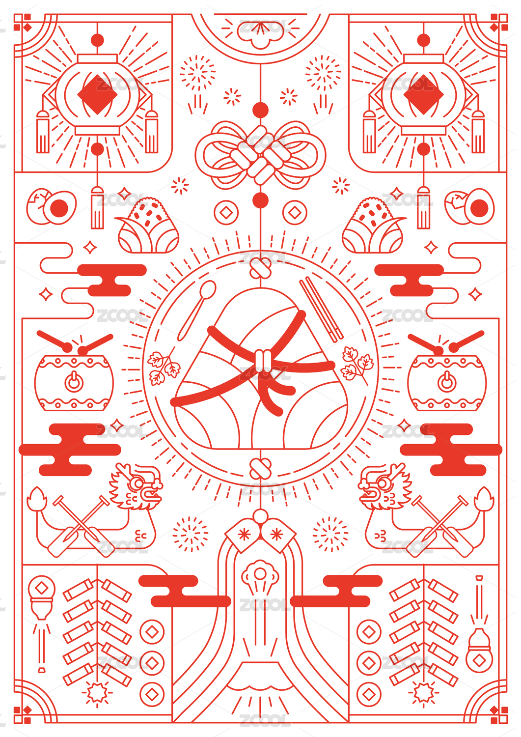端午节大粽子香包灯笼龙舟喜庆线性庆典海报