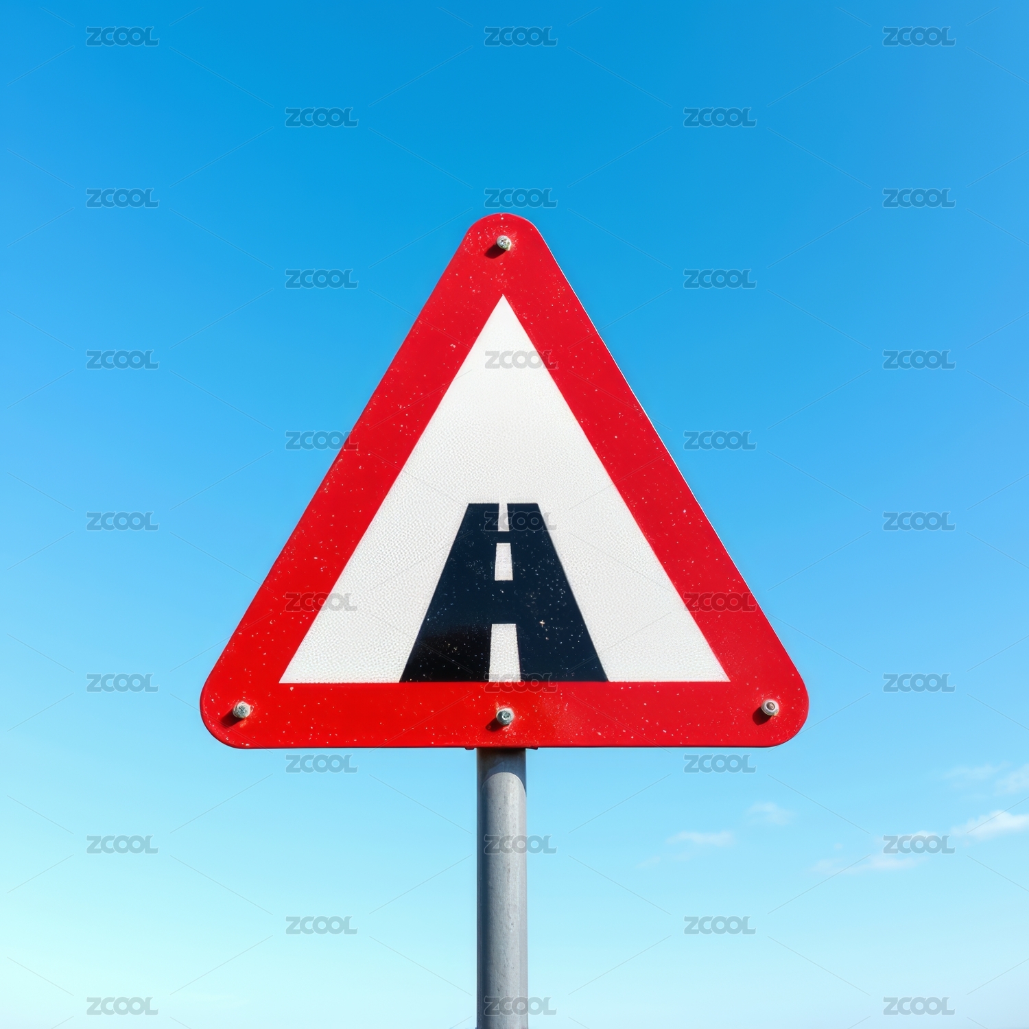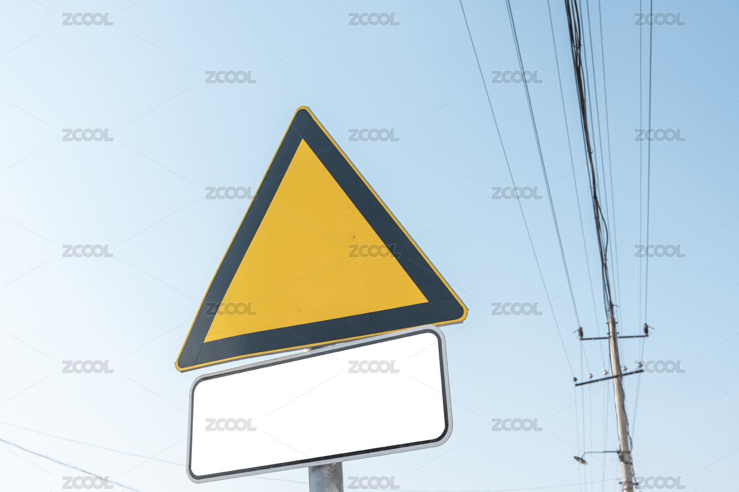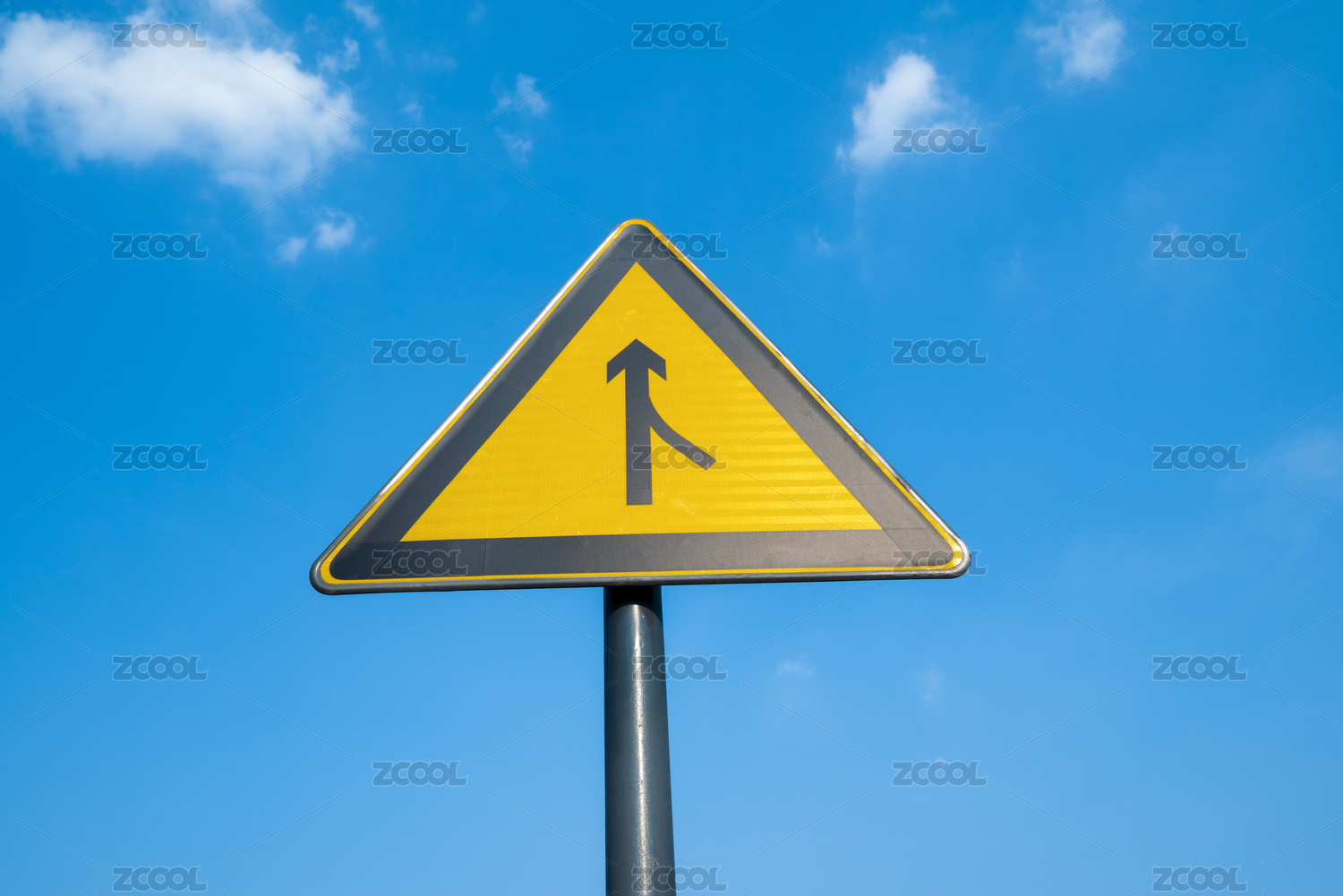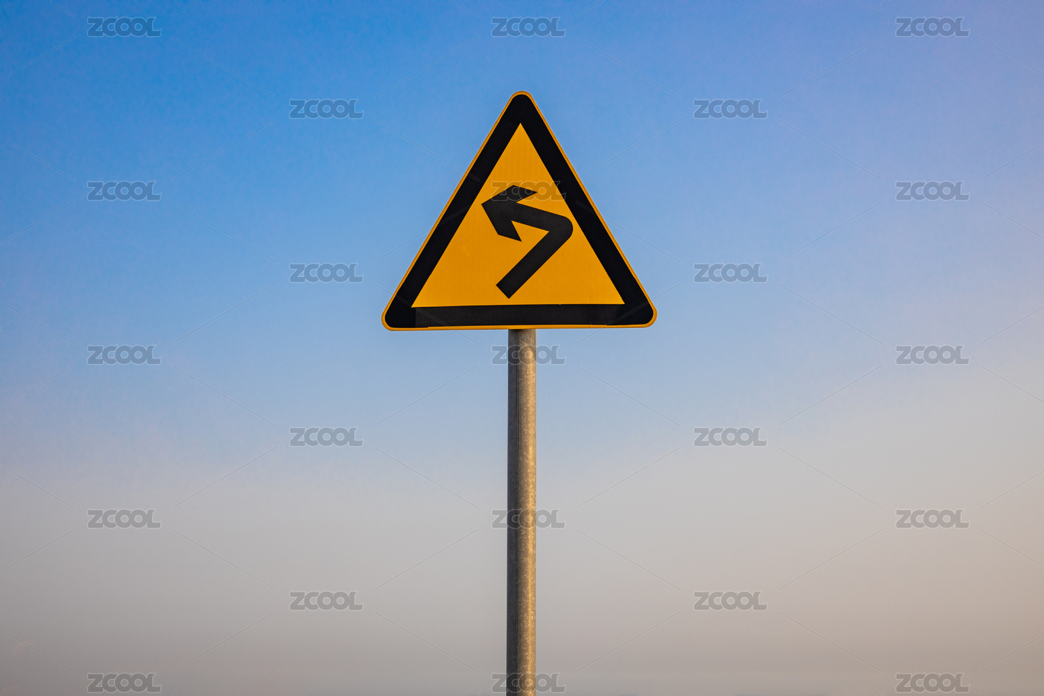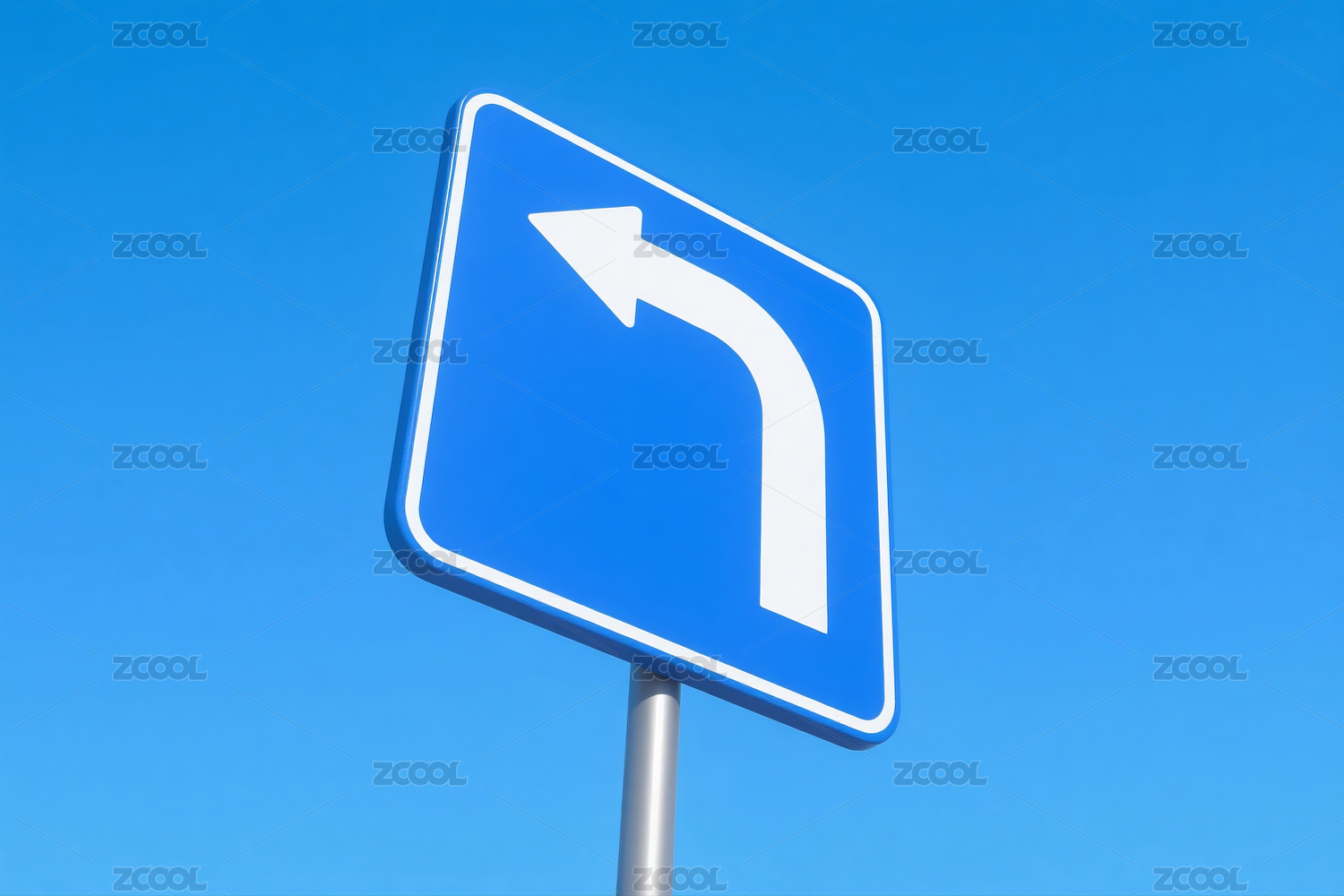 蓝天白云下的交通标志警示标识禁止转弯右转