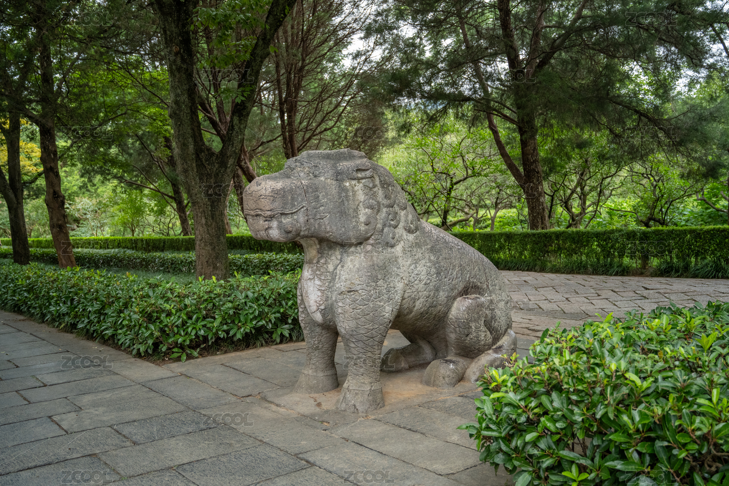 南京钟山明孝陵景区石像路夏季獬豸狮子麒麟