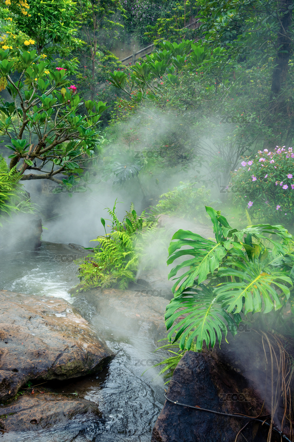 雾气缭绕的亚热带植物公园