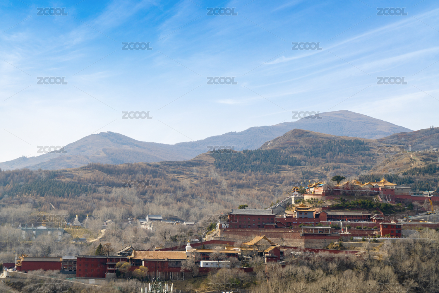 亚洲,中国,季节,颜色,建筑,景观,山西,忻州,五台山,寺院