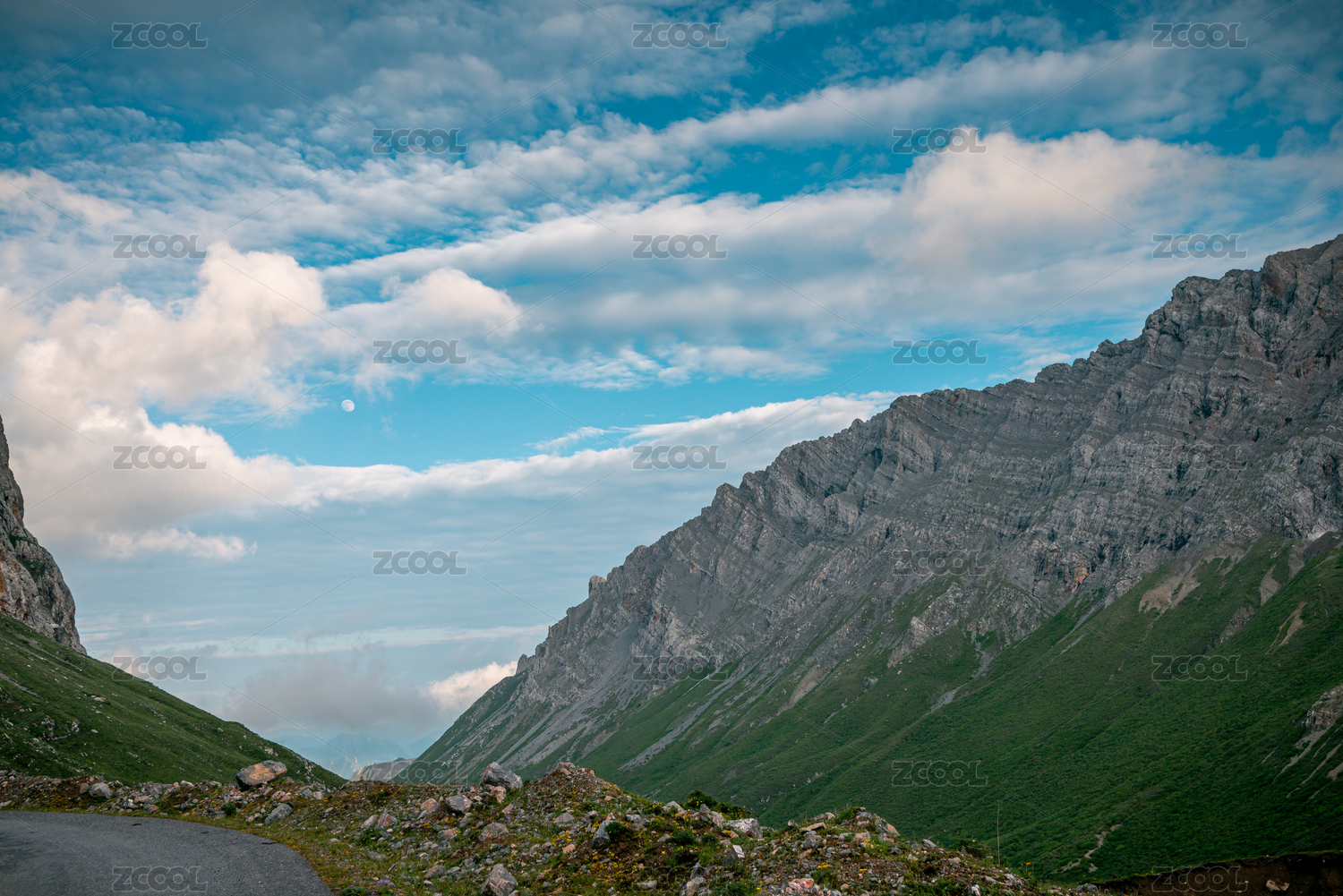 中国新疆夏季蓝天白云下G217独库公路沿途高山草原