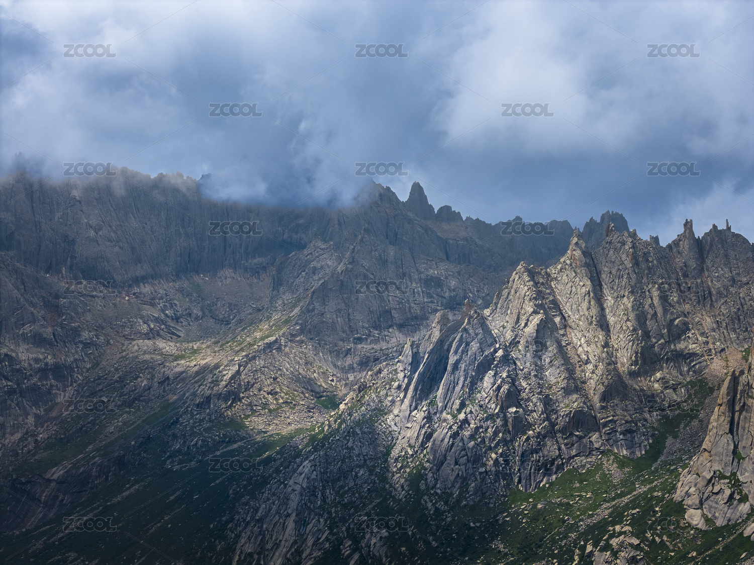 中国新疆独库公路上的天山,怪石嶙峋的山体