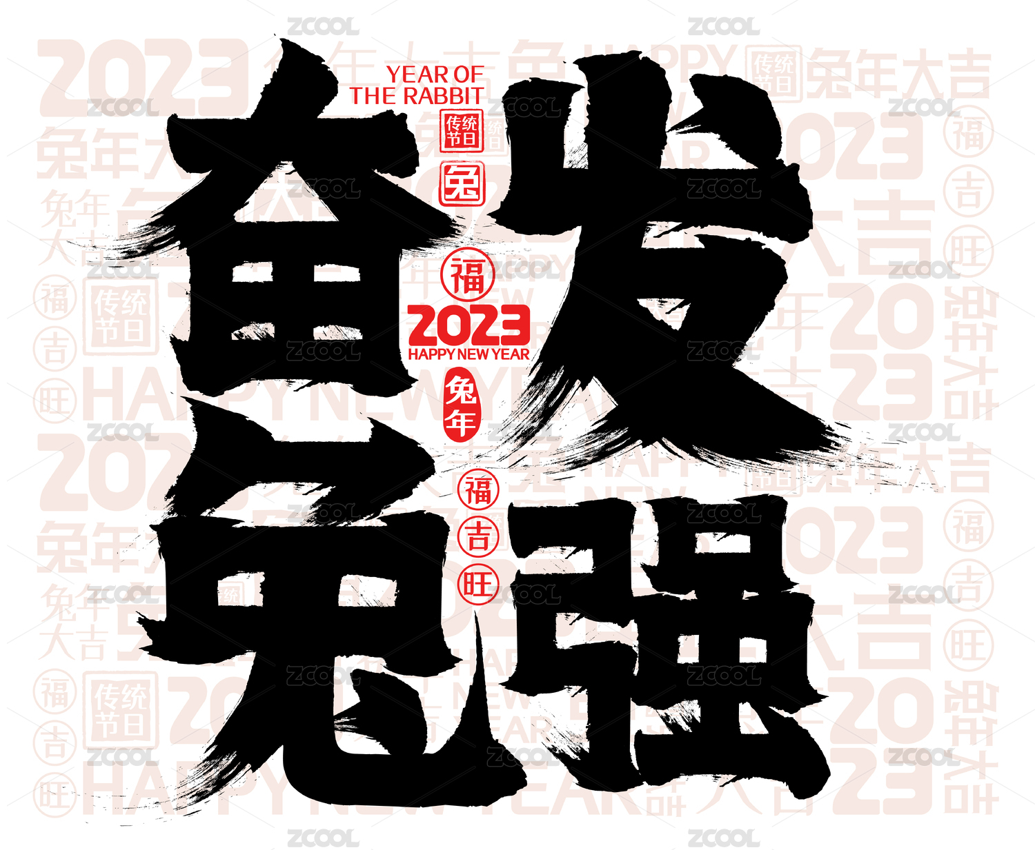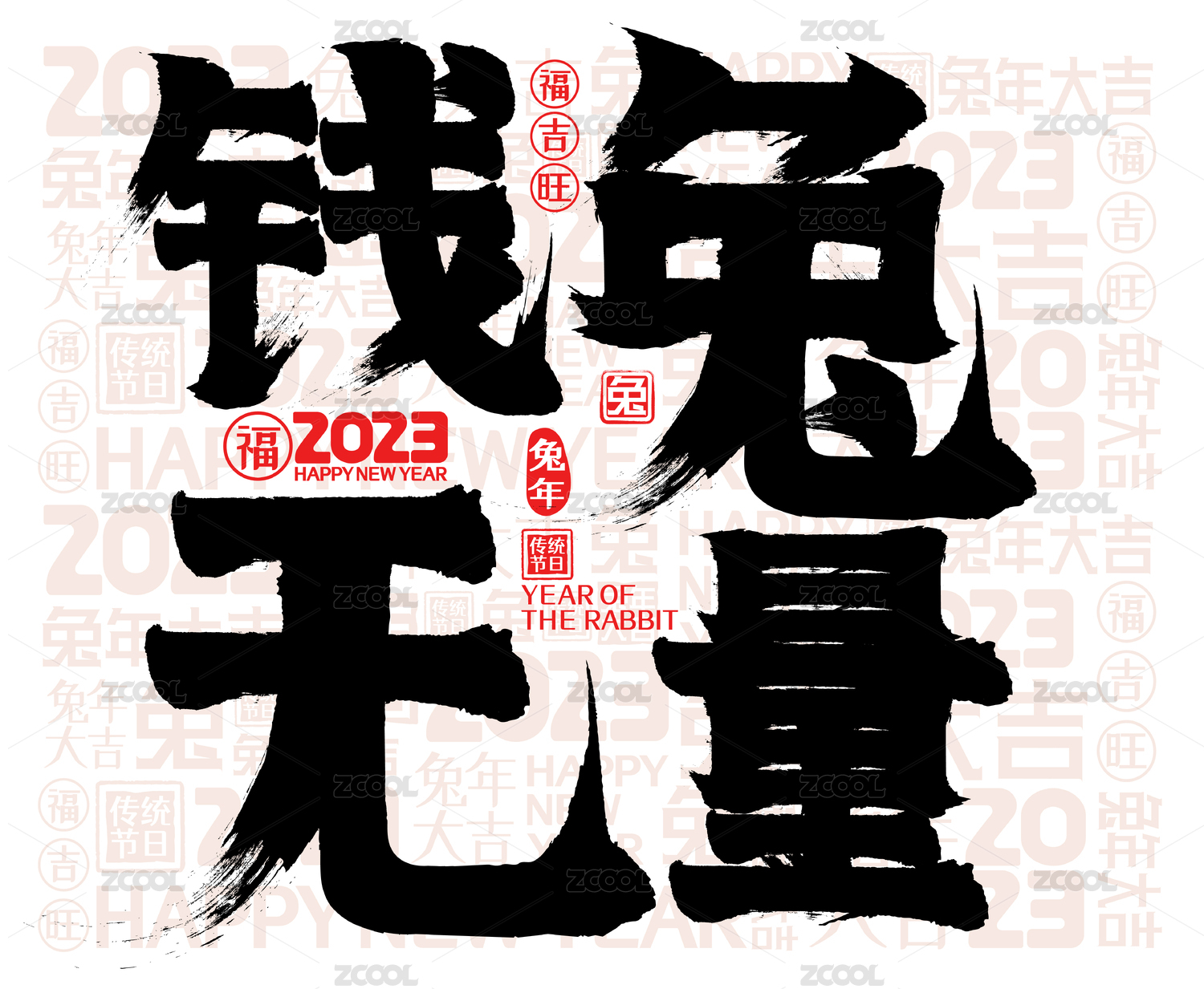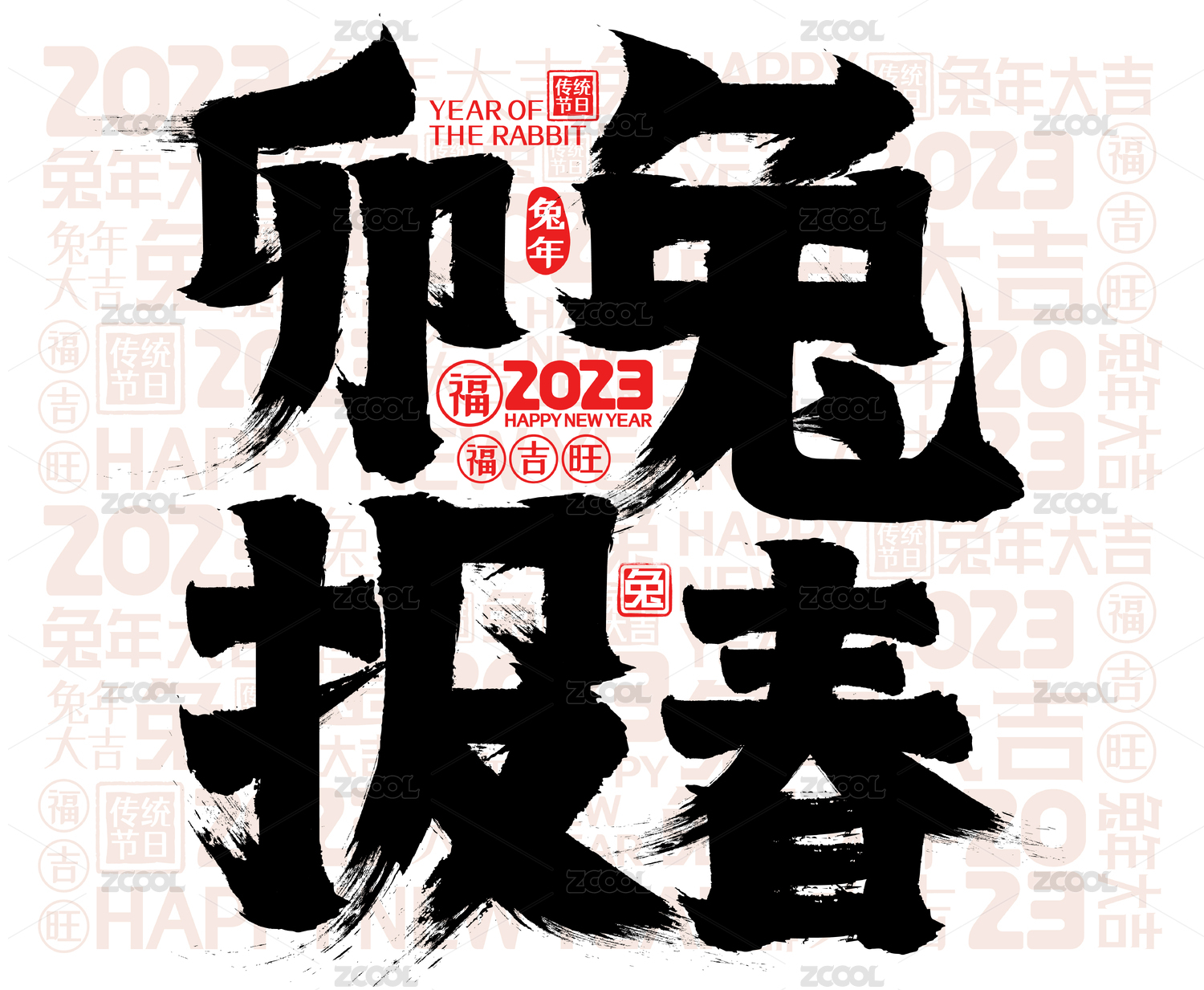 2023瑞兔迎祥喜庆中国红兔年春节毛笔字
