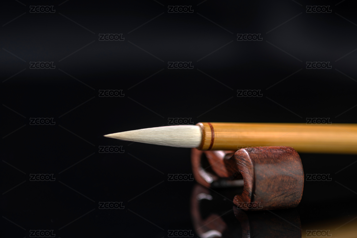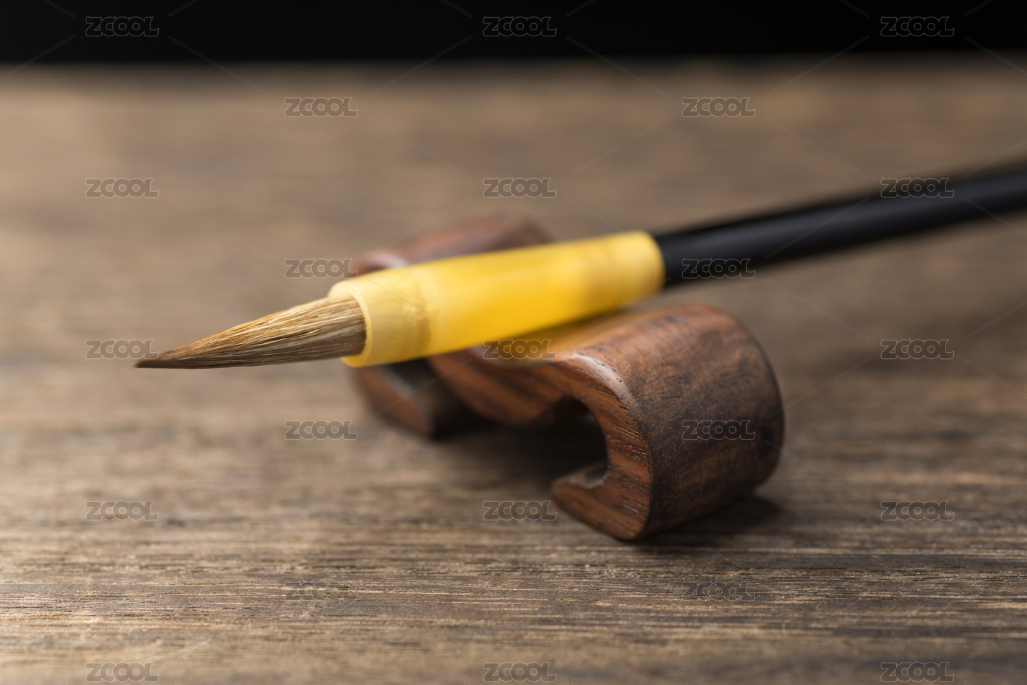 黑背景前毛笔特写