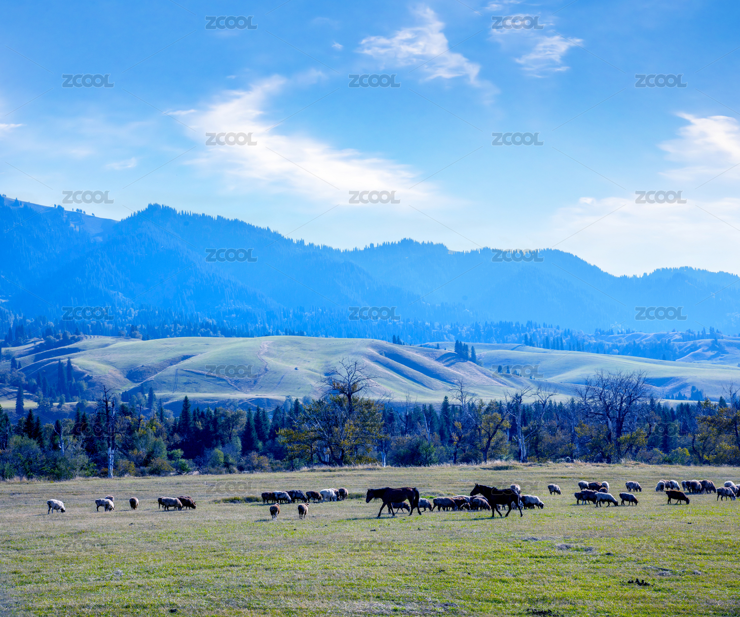中国新疆伊犁那拉提草原的森林草原和牧场