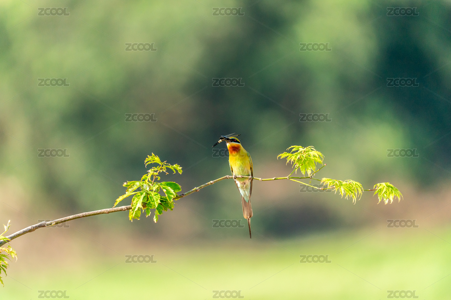 栗喉蜂虎鸟在枝头栖息捕食昆虫的精彩瞬间