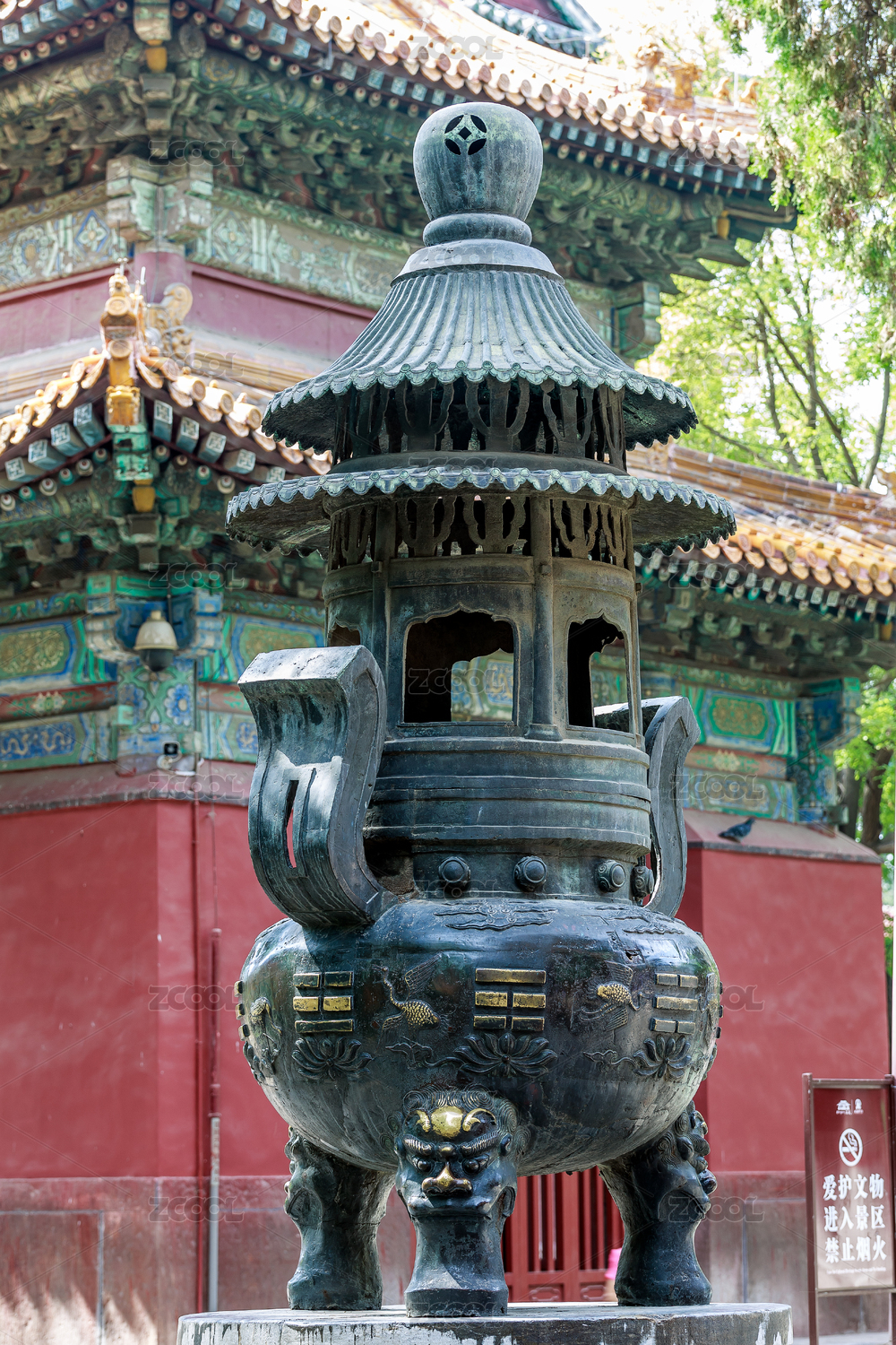 北京孔庙和国子监博物馆辟雍旁的古代香炉