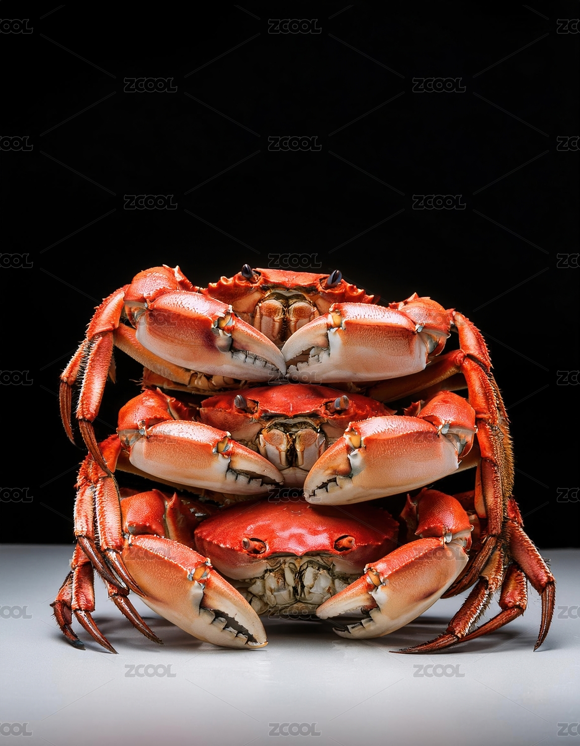 俯视一只黑色背景中红色熟螃蟹完整外观